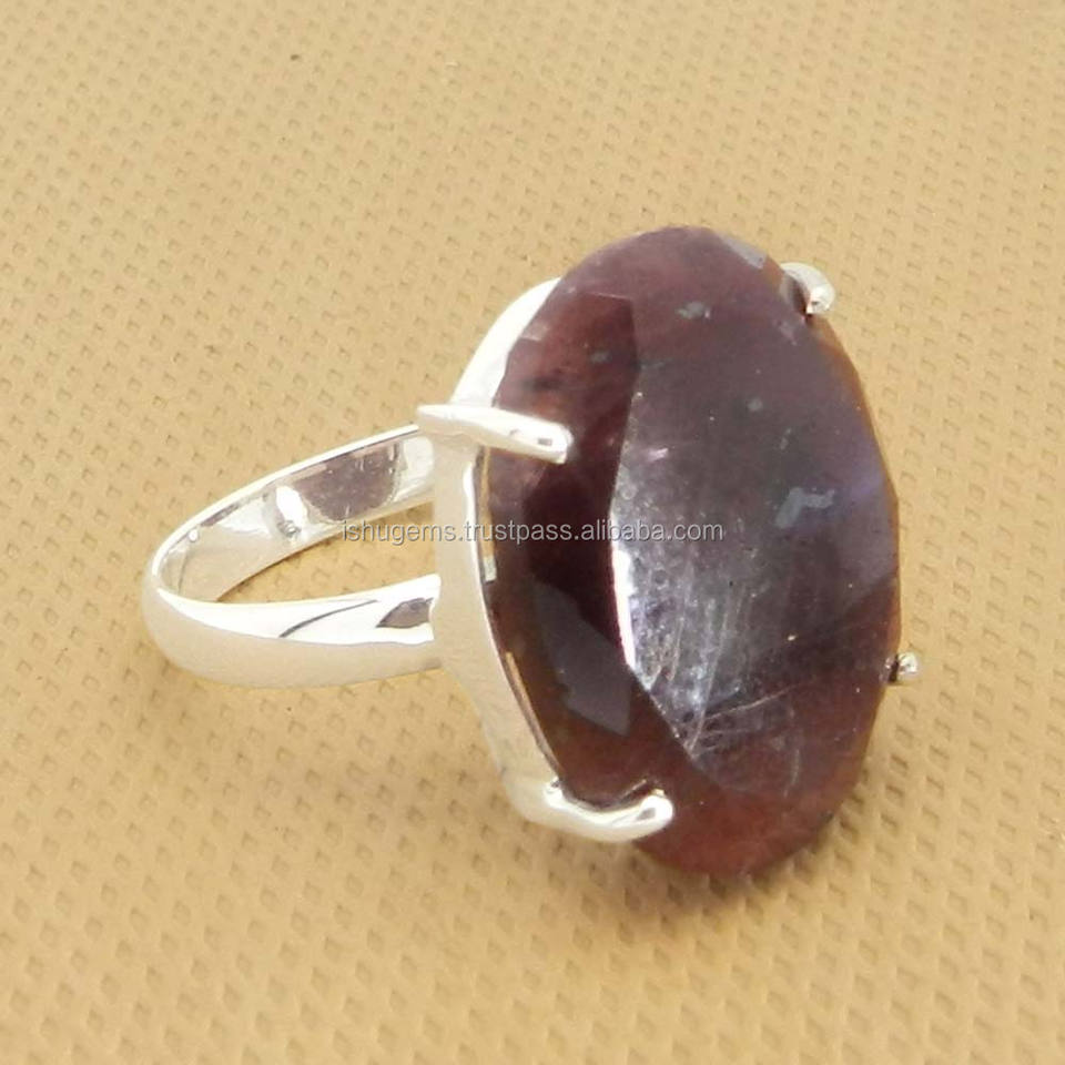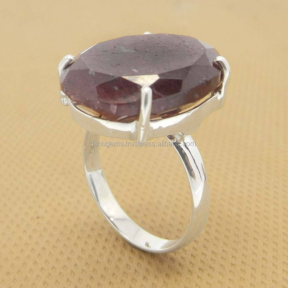 925เงินสเตอร์ลิงทับทิมคอรันดัมพลอยรูปไข่ตัดง่ามชุดแหวน