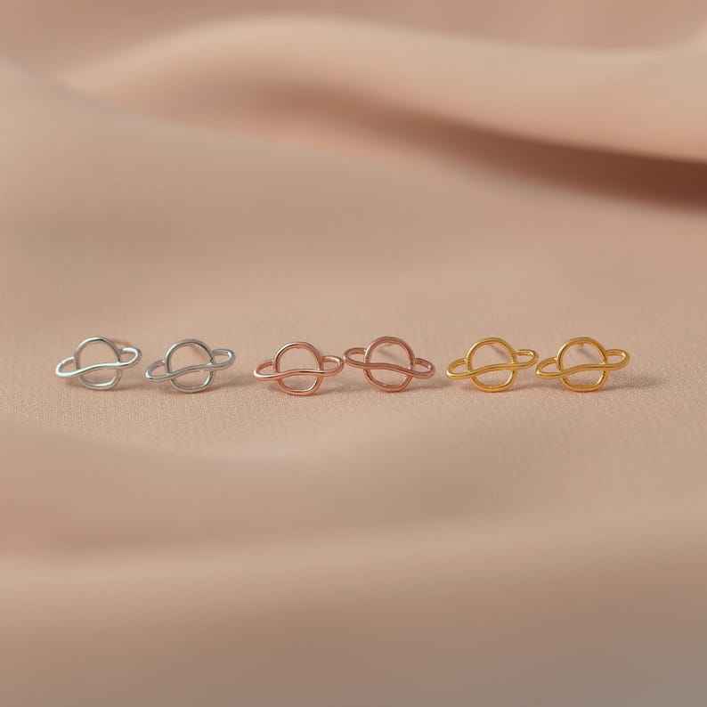 ชื่อสินค้า:ต่างหูสตั๊ดลวดดาวเสาร์เงินแท้ 925