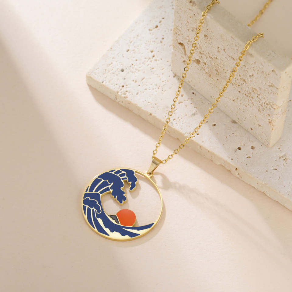 จี้เงินแท้ 925 ประดับมอสซาไนต์รูปคลื่นทะเล ชุบทอง 14k พร้อมเคลือบเงา สร้อยคอวินเทจ ของขวัญสำหรับผู้หญิงและผู้ชาย