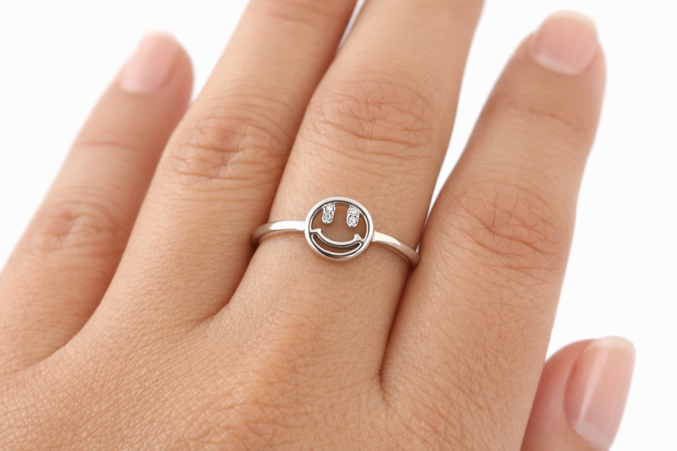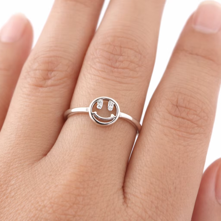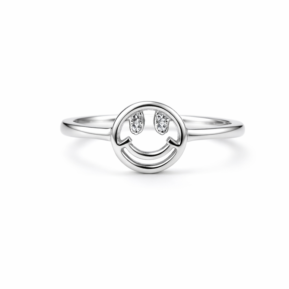 แหวนเงินแท้ 925 รูปหน้ายิ้ม ประดับอัญมณี งานแฮนด์เมด เครื่องประดับหน้ายิ้มสำหรับผู้หญิง