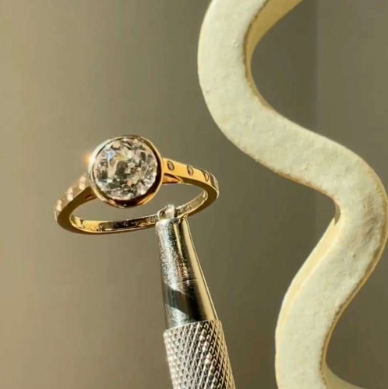 ชุดแหวนเพชรเม็ดเล็กชุบสีเหลืองสำหรับงานแต่งงานแหวนเพชรเม็ดกลมตัดเดี่ยวทำจากเงินแท้สำหรับ925