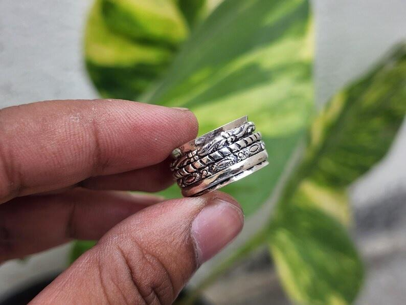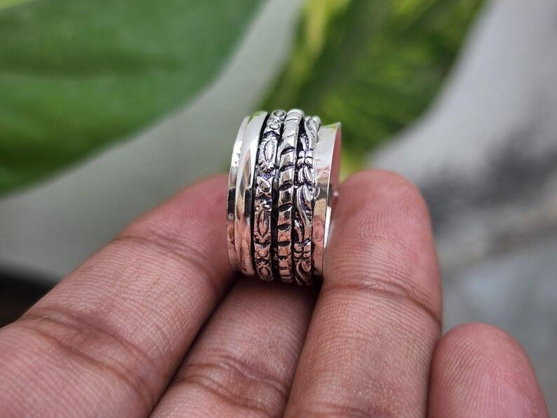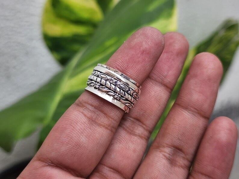 แหวนเงินแท้ 925 แบบหมุนได้ หลายสี สำหรับทำสมาธิ สไตล์โบฮีเมียน ทำด้วยมือ ช่วยบรรเทาความวิตกกังวล เหมาะสำหรับผู้หญิง สวมใส่ได้ทุกวัน