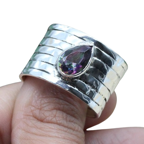 แหวนสปินเนอร์เงินสเตอร์ลิงทำด้วยมือพลอยเทียม925ชุบโรเดียมทำด้วยมือเครื่องประดับตามธรรมชาติ