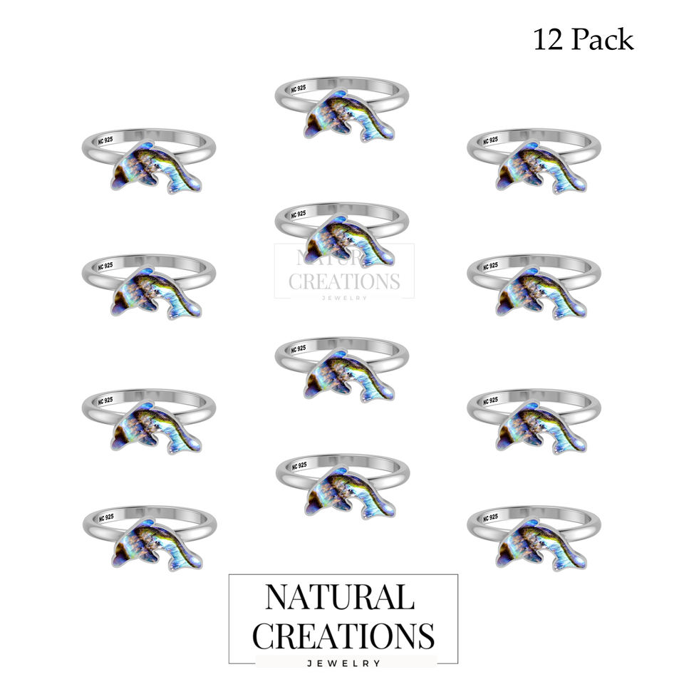 แหวนซ้อนกันได้สำหรับงานแต่งงานแบบคลาสสิกสีเงิน925ฝาพลอยหอยเป๋าฮื้อรูปทรงปลาโลมาชิ้นธรรมชาติทันสมัยแฟนซี