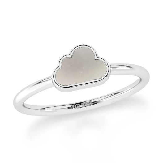 แหวนแต่งงานเงินแท้ 925 แบบซ้อนได้ ประดับมุกทรงเมฆ ดีไซน์เก๋ ทันสมัย