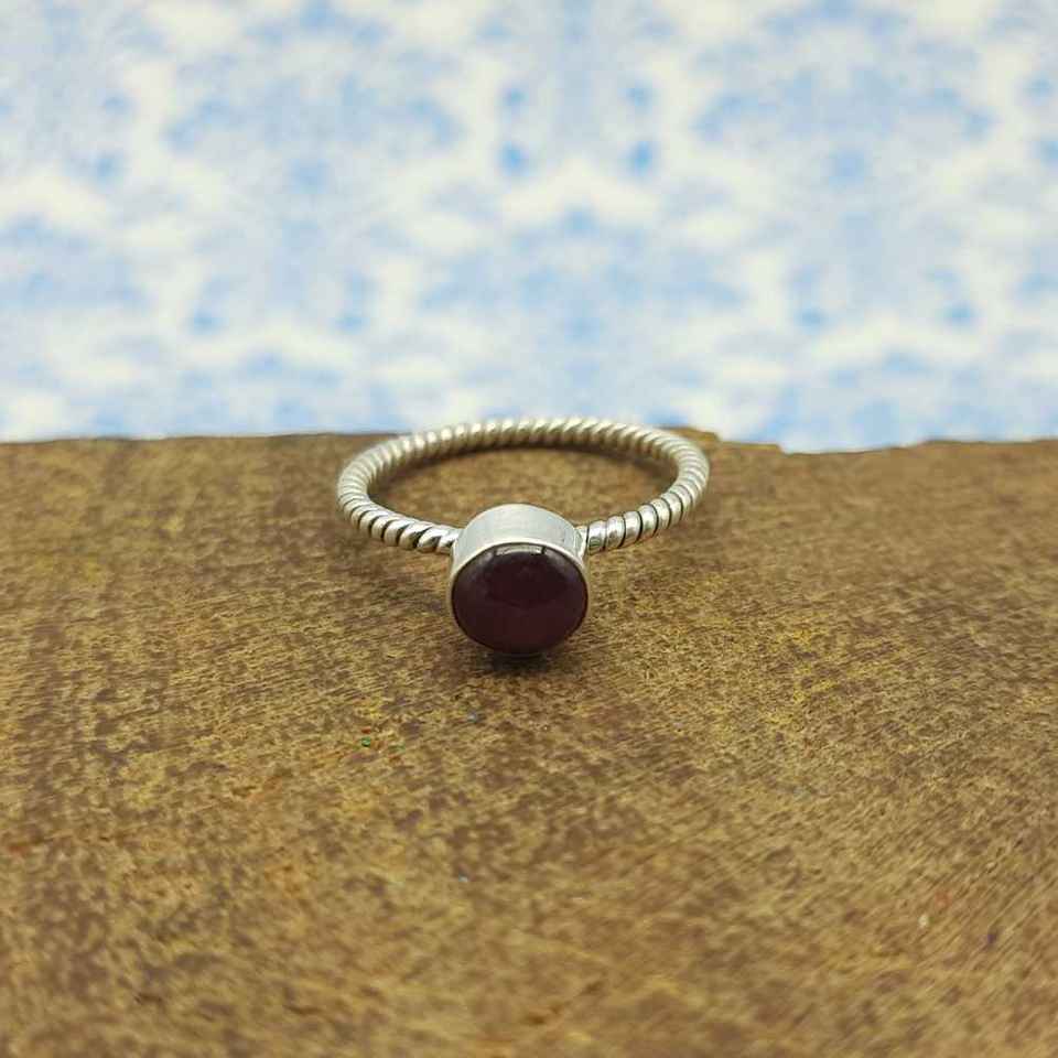 แหวนเงินสเตอร์ลิงประดับพลอยทับทิมรูปดาว925เป็นของขวัญวันคริสต์มาสทรงกลมทำจากหินปาร์ตี้แหวนสำหรับผู้หญิงของเธอ