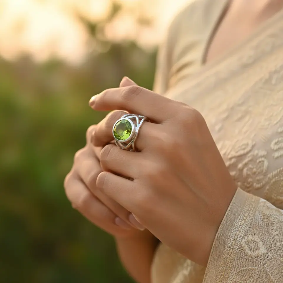 แหวนเงินแท้ 925 สำหรับผู้หญิง ประดับพลอยแพลตตินัม พร้อมพลอยเพอริดอททรงรีและโทแพซทรงรี ตัดแบบธรรมชาติ