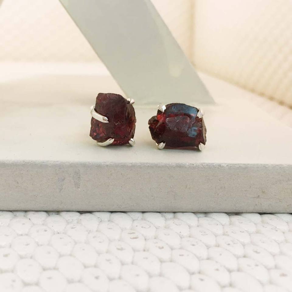 ต่างหูเม็ดเงินสเตอริ925พร้อมโกเมนสีแดงธรรมชาติอัญมณีหยาบดีไซน์ทันสมัยสำหรับงานแต่งงานและของขวัญโอกาส