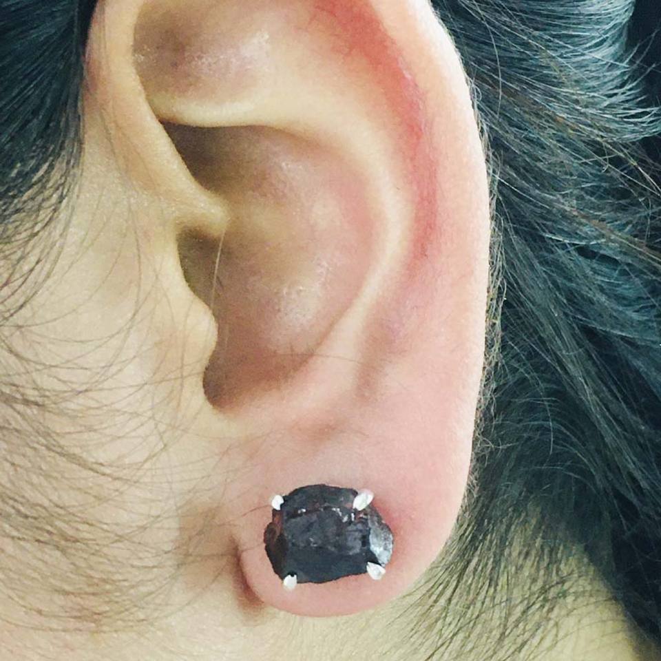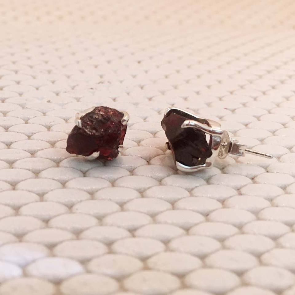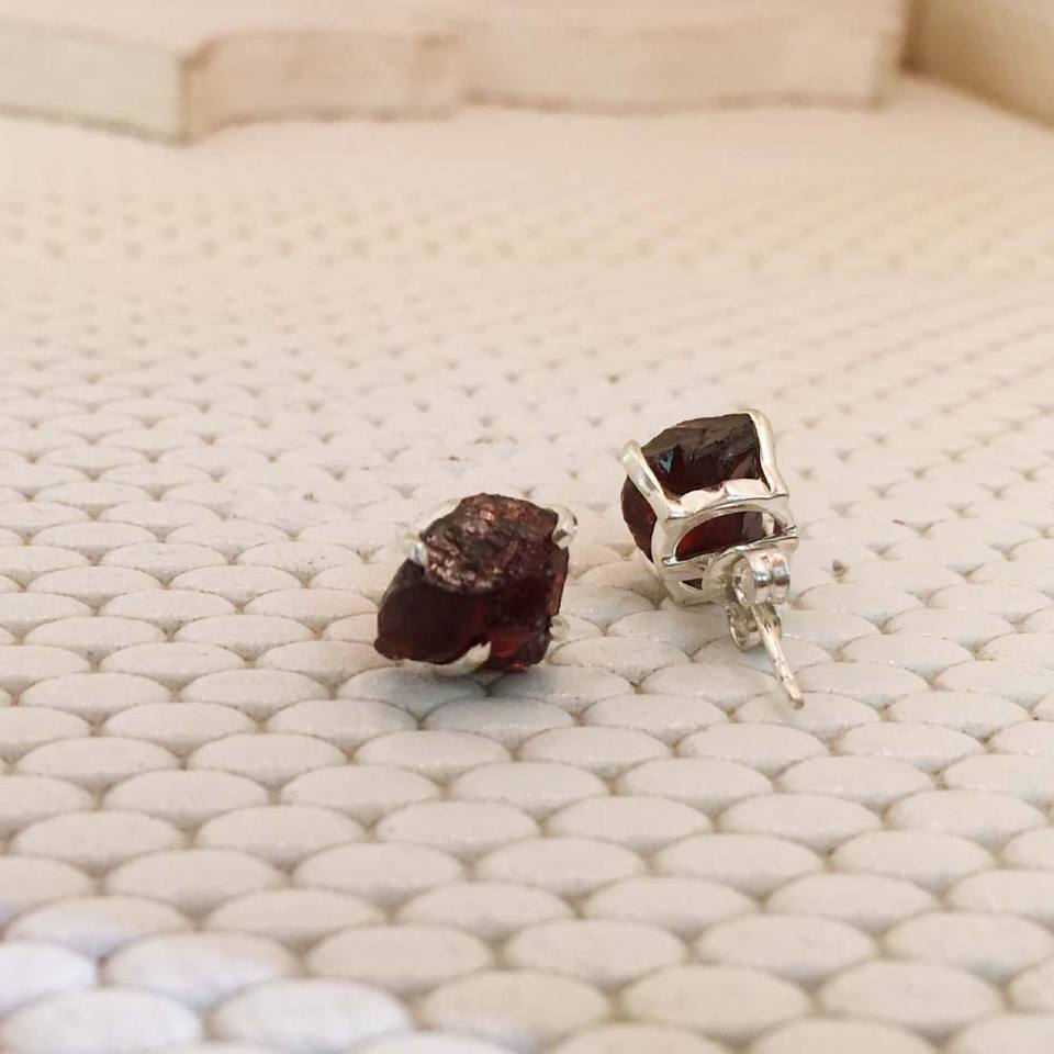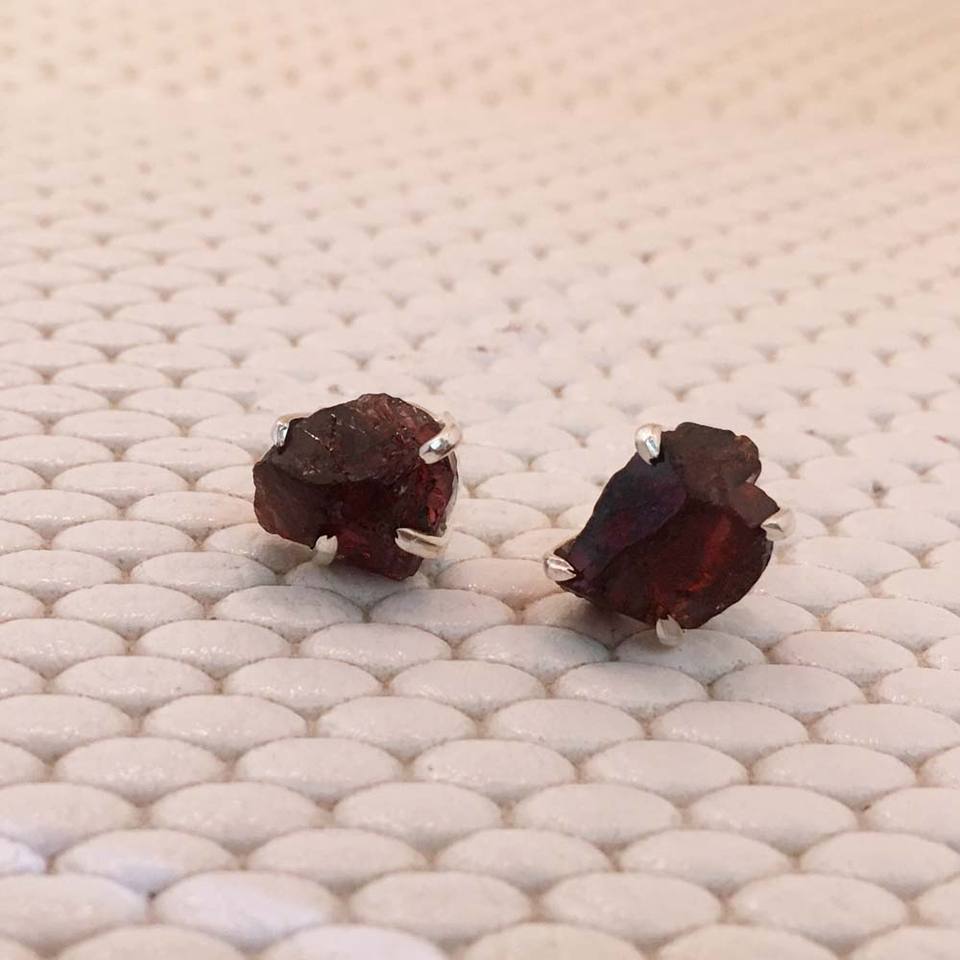 925พลอยโกเมนแบบหยาบกระดุมเงินสเตอร์ลิง
