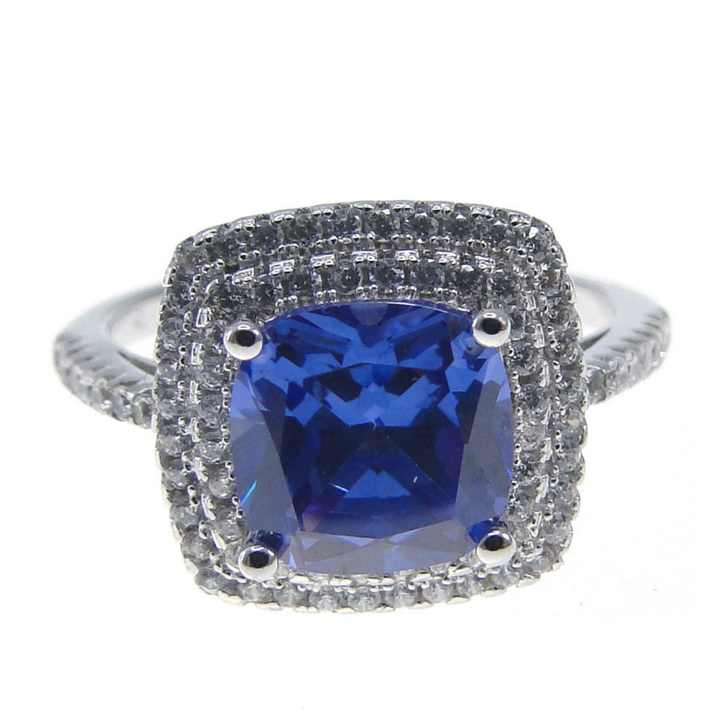 ชื่อสินค้า:แหวนหมั้นแทนซาไนต์และเพชร, แหวนเงินแท้ 925 ประดับเพชร CZ