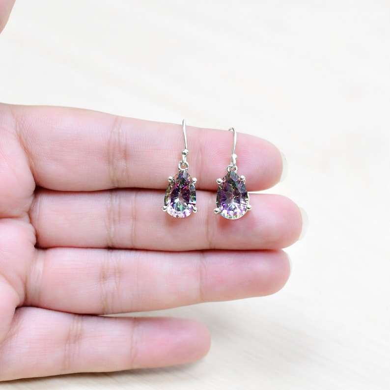 ต่างหูแบบห้อยรูปหยดน้ำสีเงินสเตอร์ลิง925ทำด้วยมือหินโทแพซอัญมณีธรรมชาติเครื่องประดับสำหรับงานแต่งงาน