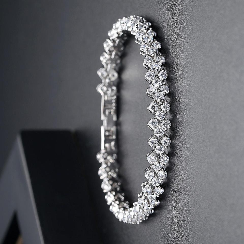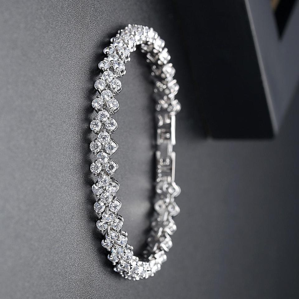 สร้อยข้อมือเทนนิสสีเงินสเตอร์ลิงสำหรับผู้หญิงขนาด6มม. 925เซอร์คอนทรงกลมชุบทองสไตล์อินเทรนด์สำหรับเป็นของขวัญการหมั้น