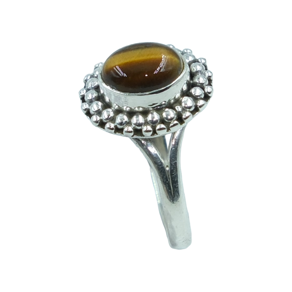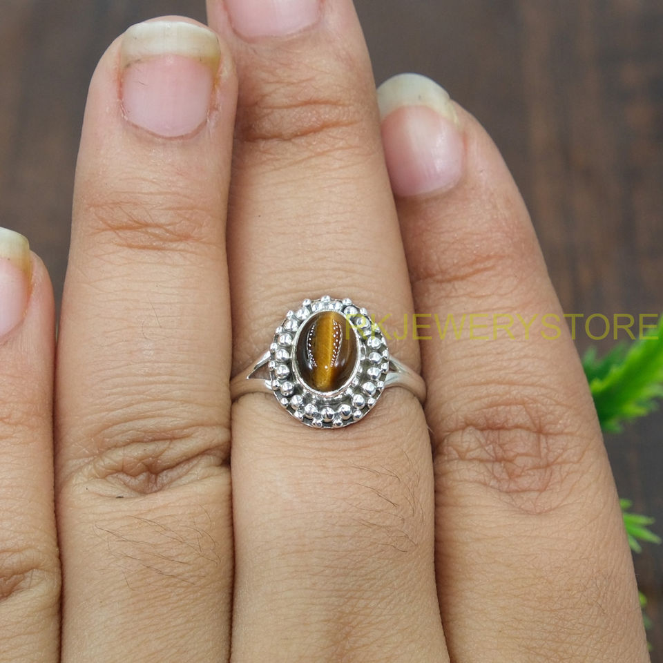 แหวนเงินแท้ 925 ประดับพลอยไทเกอร์อายสีน้ำตาลธรรมชาติทรงรีแบบคาโบชองสำหรับผู้หญิง แหวนทำมือ ดีไซน์เนอร์ แหวนเครื่องประดับสุดหรูสำหรับเธอ