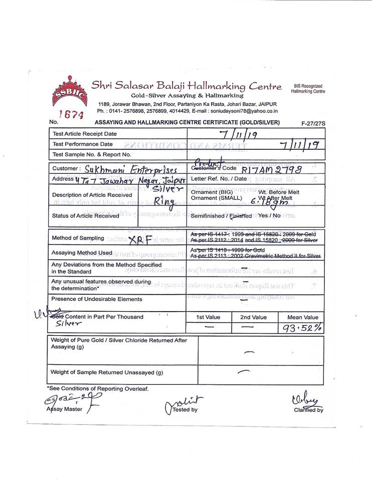 ตราประทับ:ใช่ แต่ละชิ้นมีตราประทับ 925