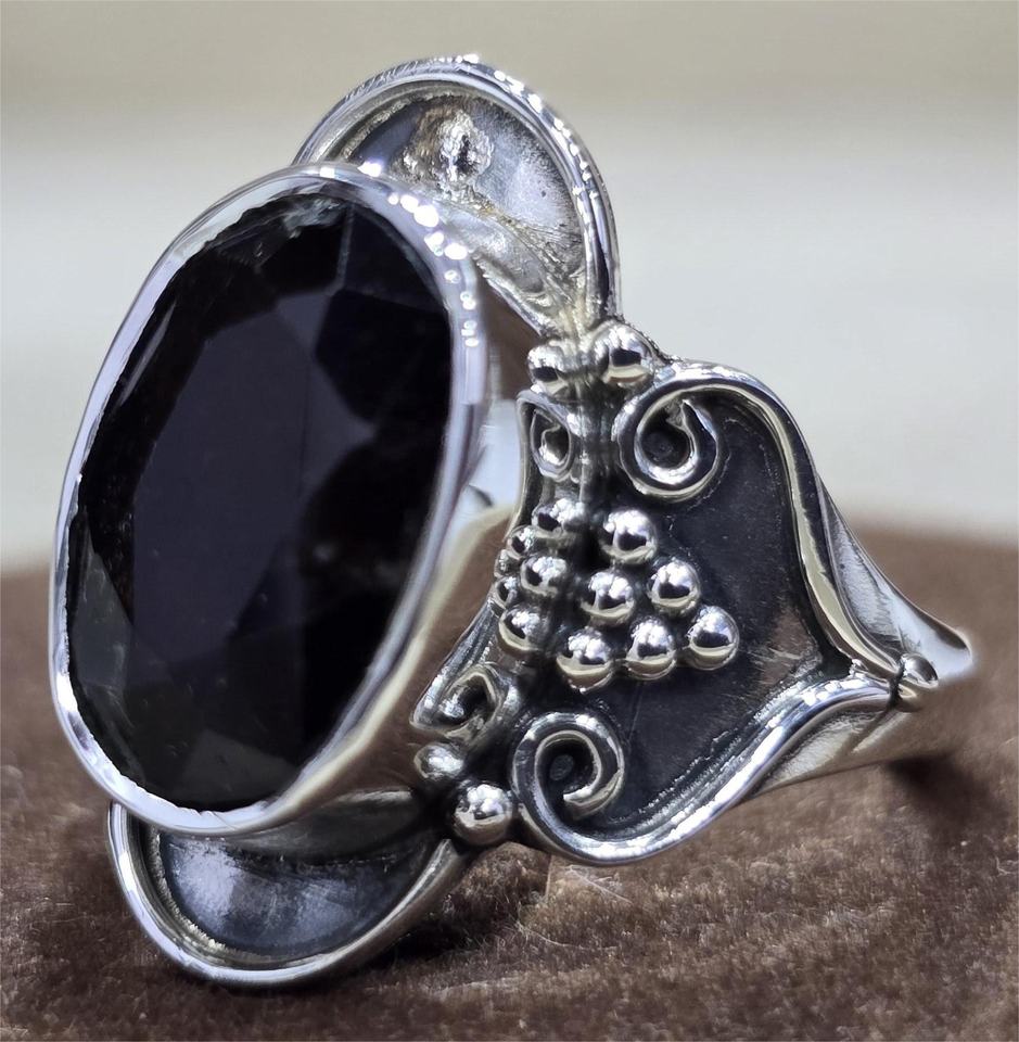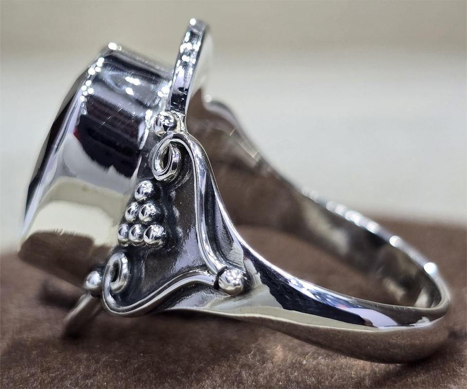 แหวนเงินแท้ทันสมัย925ดีไซน์เนอร์แหวนวงรีสีดำทำด้วยมือเครื่องประดับชั้นดีสำหรับงานแต่งงาน