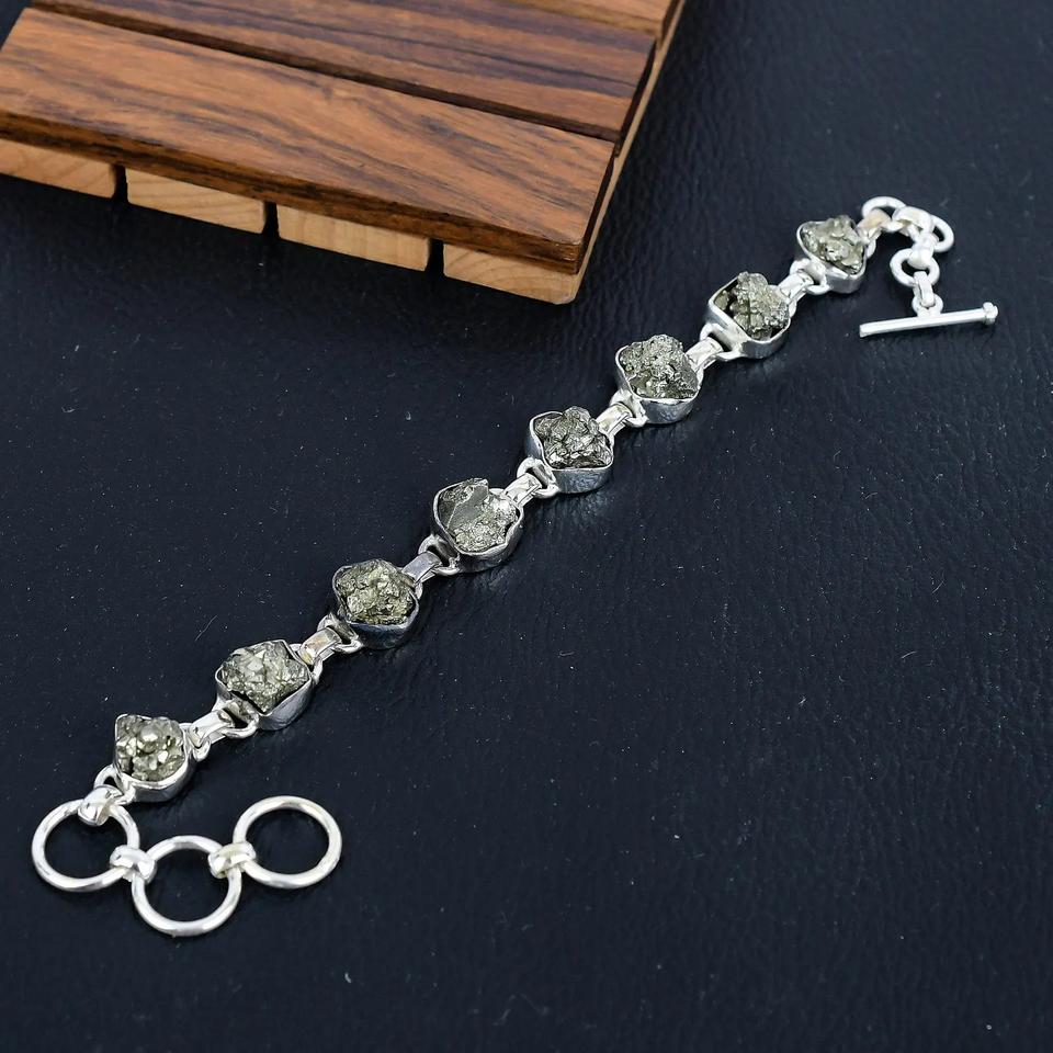 กำไลข้อมือเงินแท้ 925 ชุบทอง ประดับไพไรต์ดรูซี่ ดีไซน์ทันสมัย ทำด้วยมือจากพลอยดิบ เหมาะสำหรับทุกเพศทุกวัย ของขวัญสุดเพอร์เฟกต์สำหรับงานปาร์ตี้