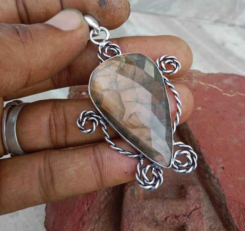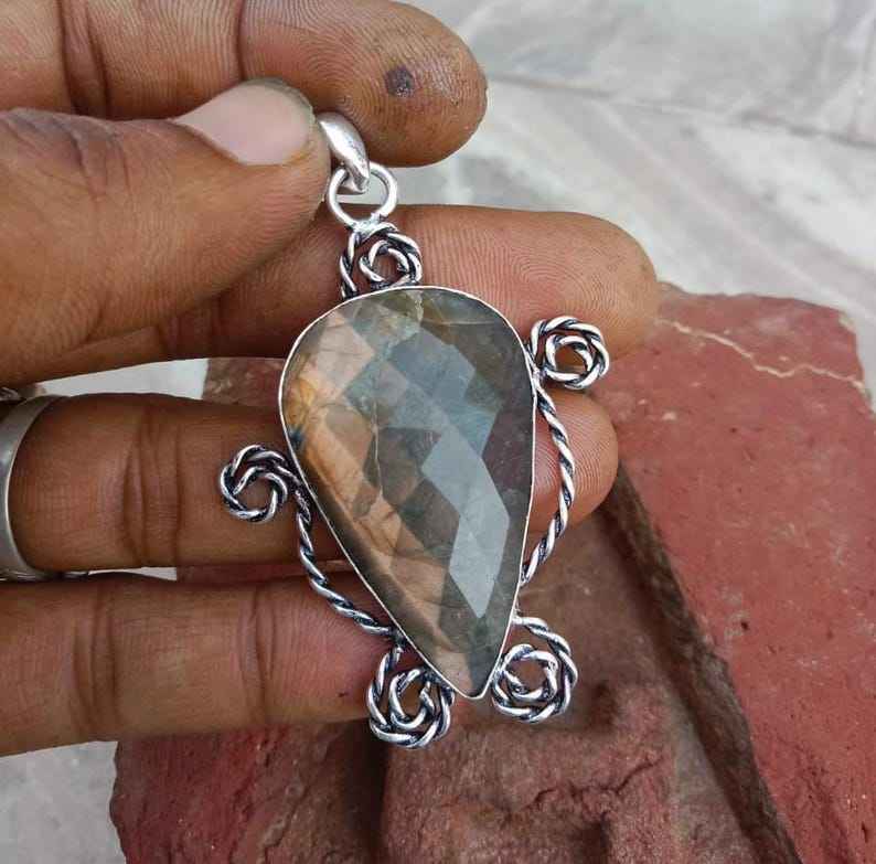 จี้เงินสเตอริ925ทำด้วยมือจี้หินอัญมณีสีฟ้าประกายคริสตัลเครื่องประดับไอเดียของขวัญ