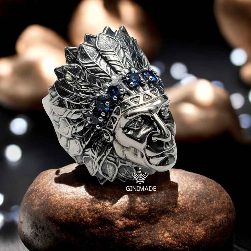 แหวนหัวหน้าเผ่าเงินสเตอร์ลิง925โดดเด่นของผู้ชายพร้อมมงกุฎเพชร CZ ทำด้วยมือเป็นของขวัญวันพ่อ