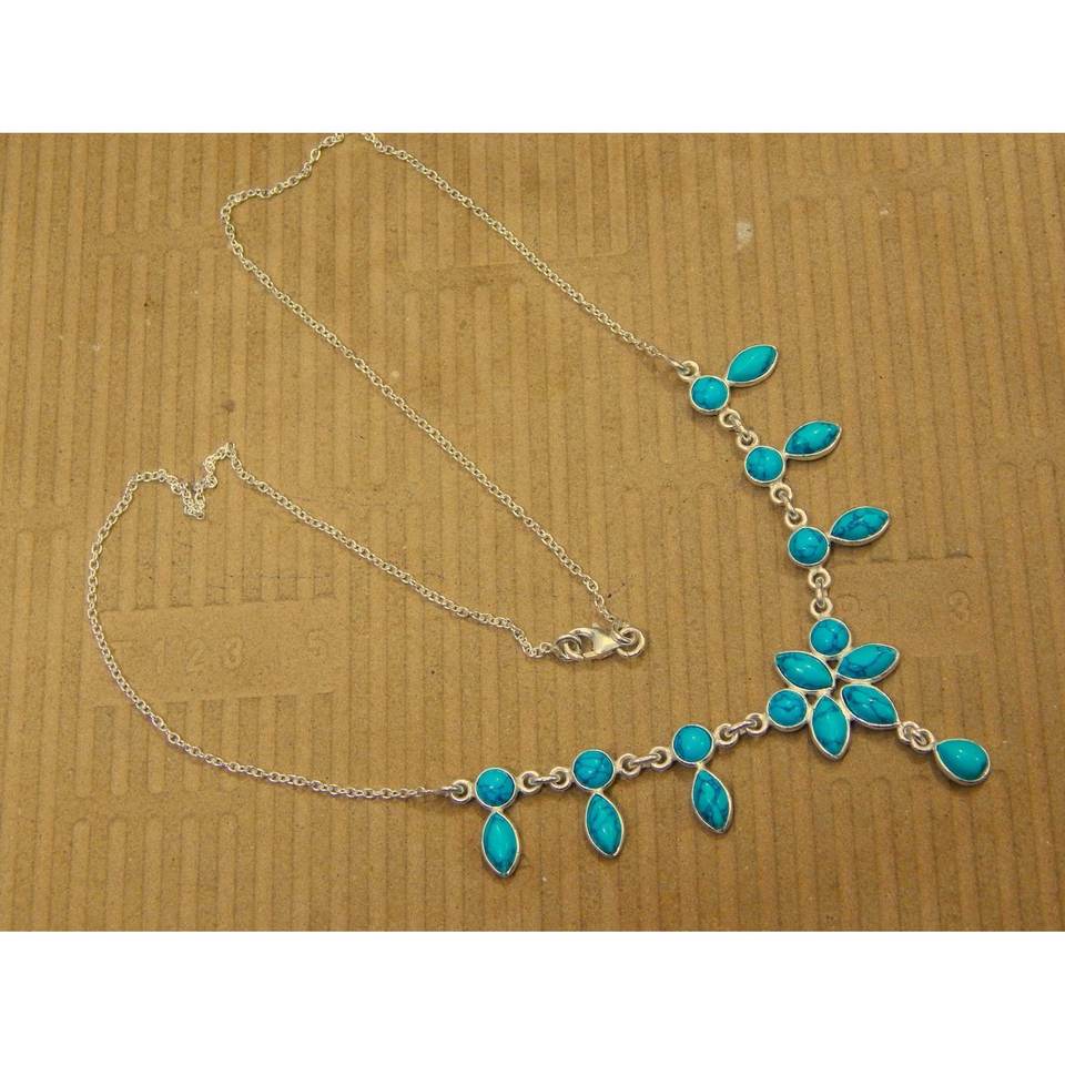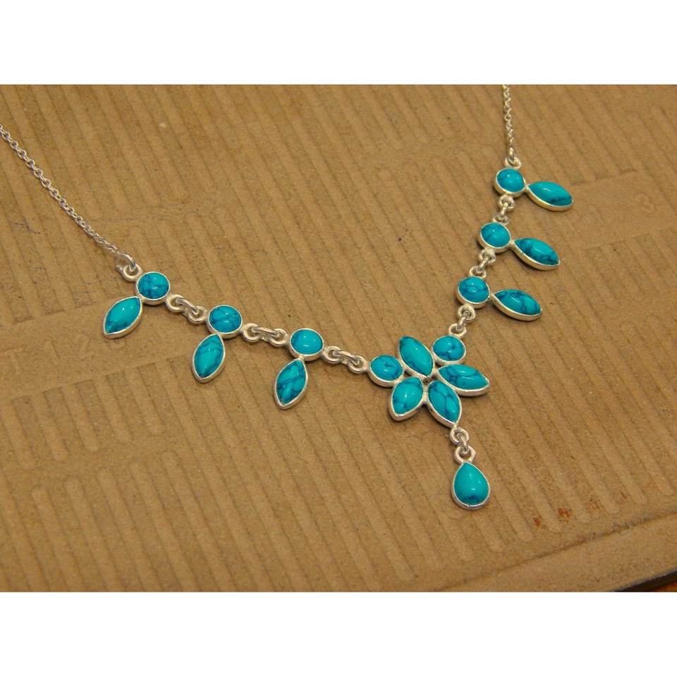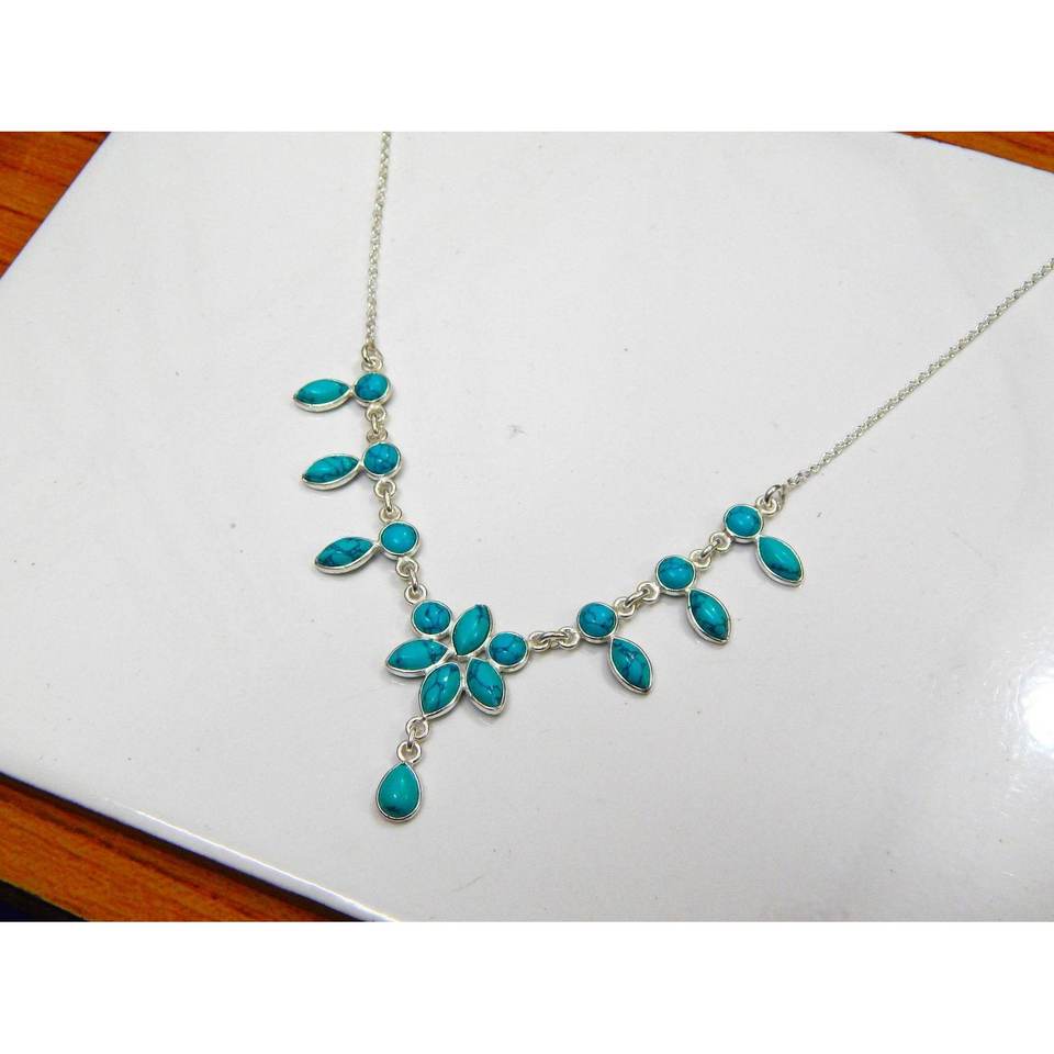 สร้อยคอเทอร์ควอยซ์เงินสเตอร์ลิง925ทำด้วยมือเครื่องประดับทองคำขาวพร้อมพลอยของขวัญสำหรับ Women-NL0143-GS