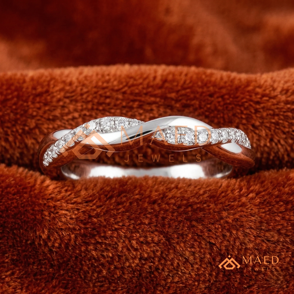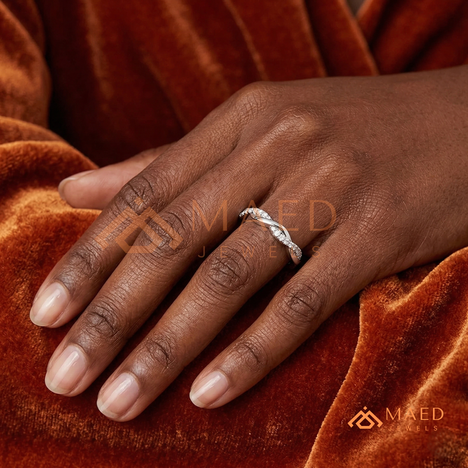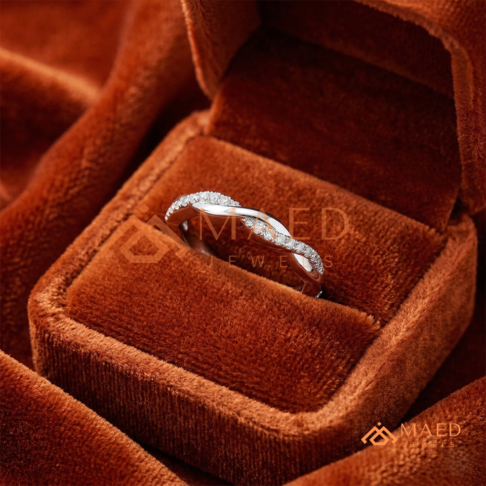 แหวนเงินแท้ 925 ดีไซน์เกลียวอินฟินิตี้ประดับโมอิสซาไนต์ แหวนแต่งงานแบบถักประกายระยิบระยับสำหรับผู้หญิง เครื่องประดับเพชรแล็บสำหรับงานหมั้น