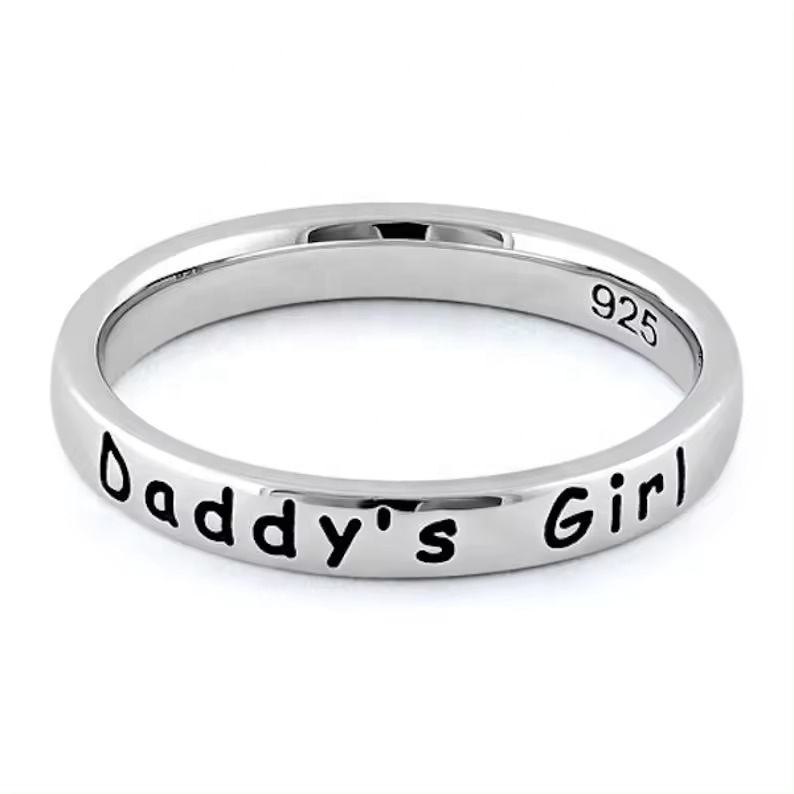 แหวนเงินแท้ 925 สลักข้อความว่า Daddy's Girl ดีไซน์วงกลมซ้อนกัน แหวนเงินดีไซน์โดดเด่นสำหรับขาย สินค้าใหม่ปี 2025