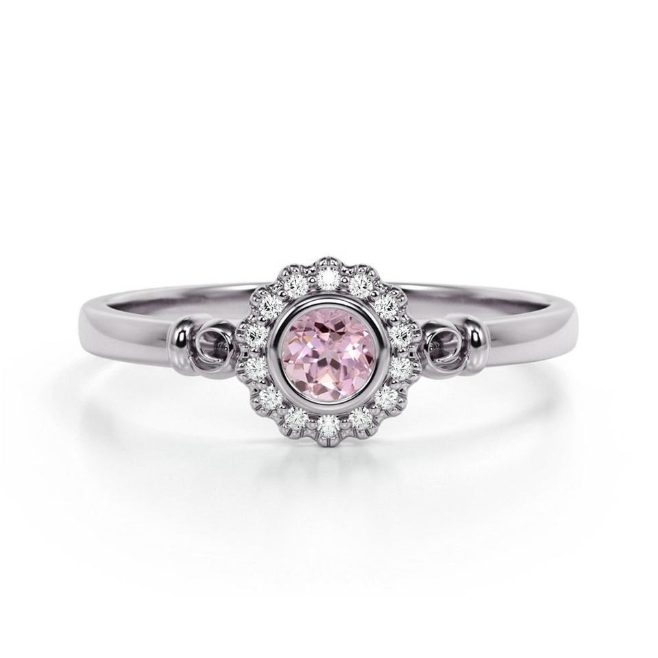 925เงินสเตอร์ลิงที่ไม่ซ้ำกัน Lab สร้างสีชมพู Moissanite กึ่งมีค่าพลอยแหวนขายส่งเครื่องประดับเงินที่โรงงานอินเดีย
