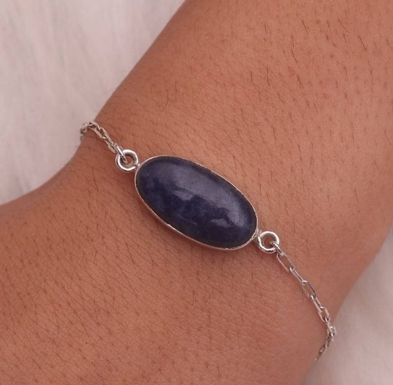 ชื่อสินค้า:สร้อยข้อมือเงินประดับพลอยเลปิโดไลต์ธรรมชาติ