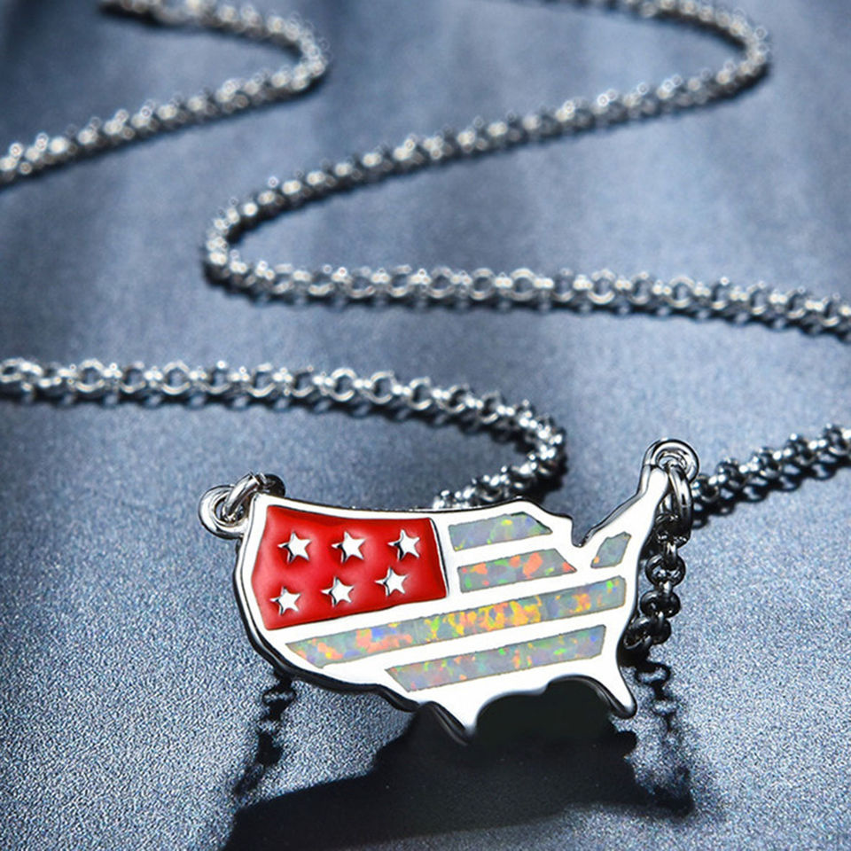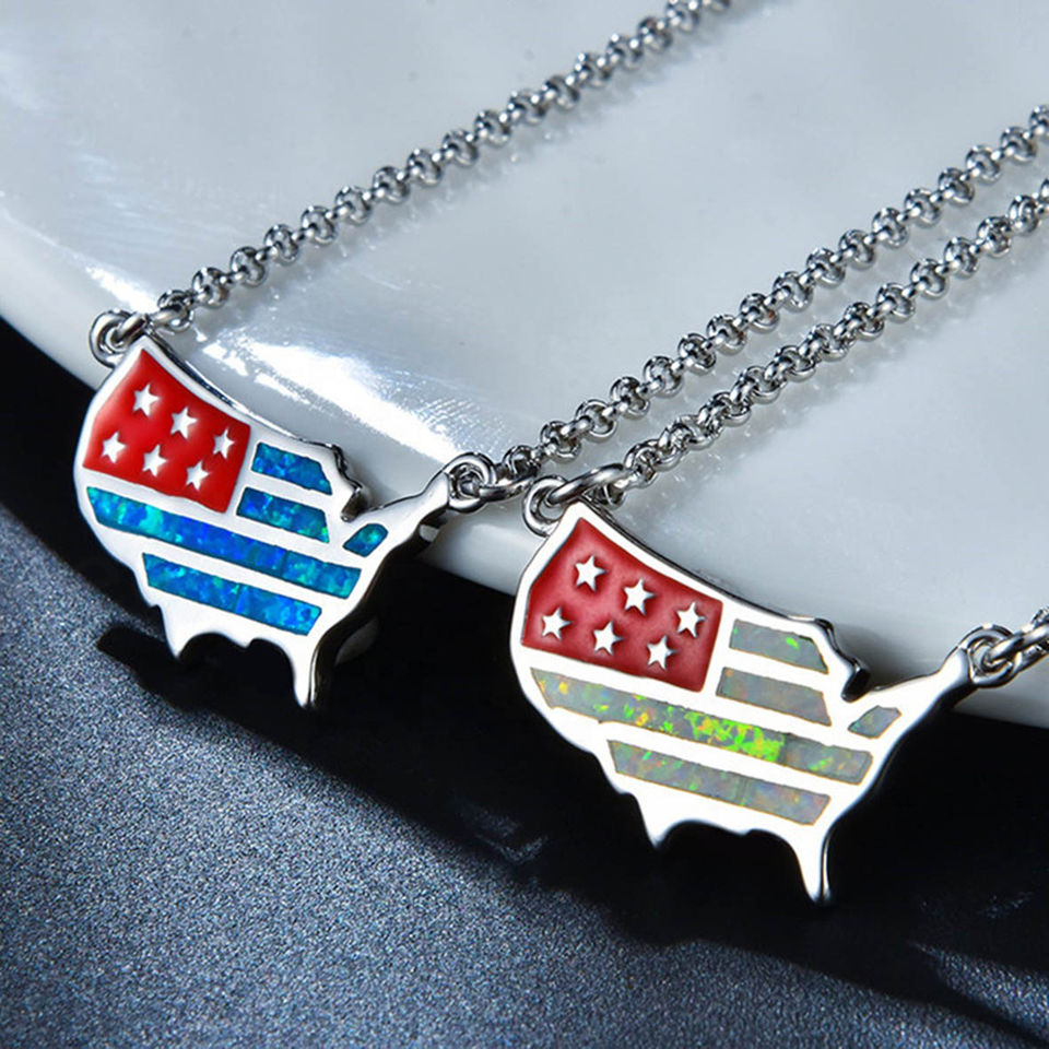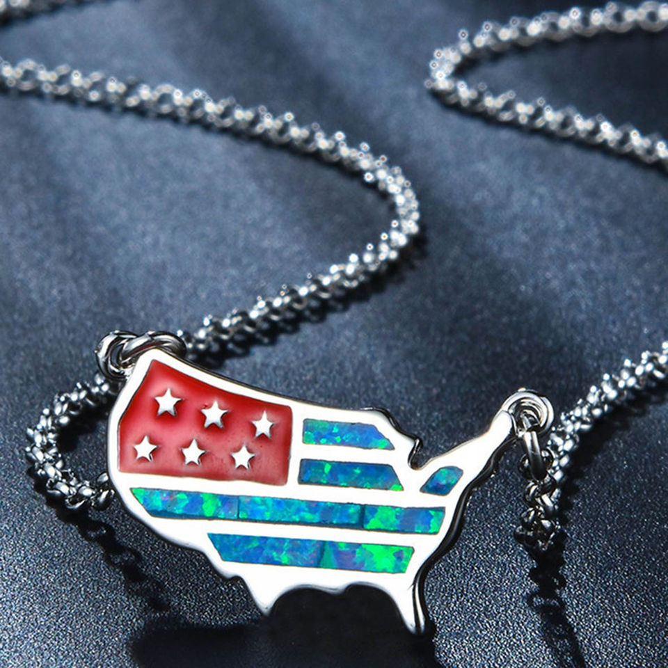 925 Sterling Silver Unity Choker American Map Pendants White Blue Fire Opal Necklaces for Women