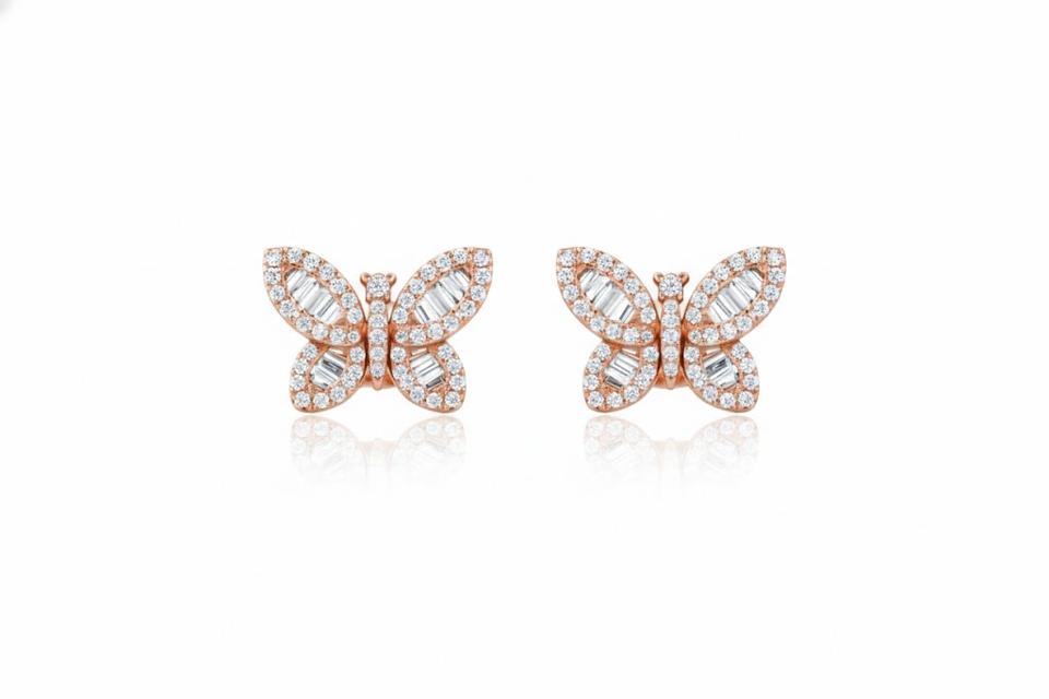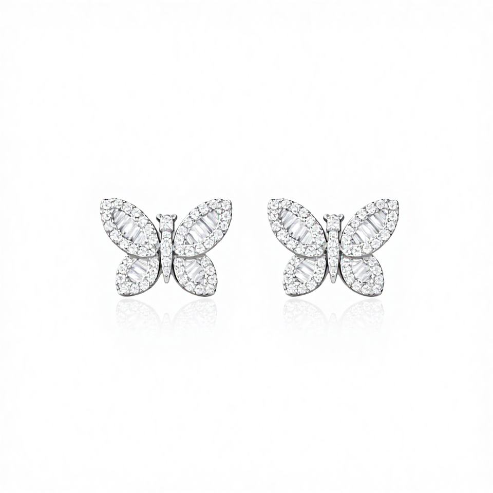 ต่างหูเงินแท้ 925 ประดับเพชร VS VVS สี DEF ทอง 10K รูปผีเสื้อทรงบาแกตต์ เพชรเลี้ยงในห้องปฏิบัติการ ของขวัญวันเกิดสำหรับผู้หญิง
