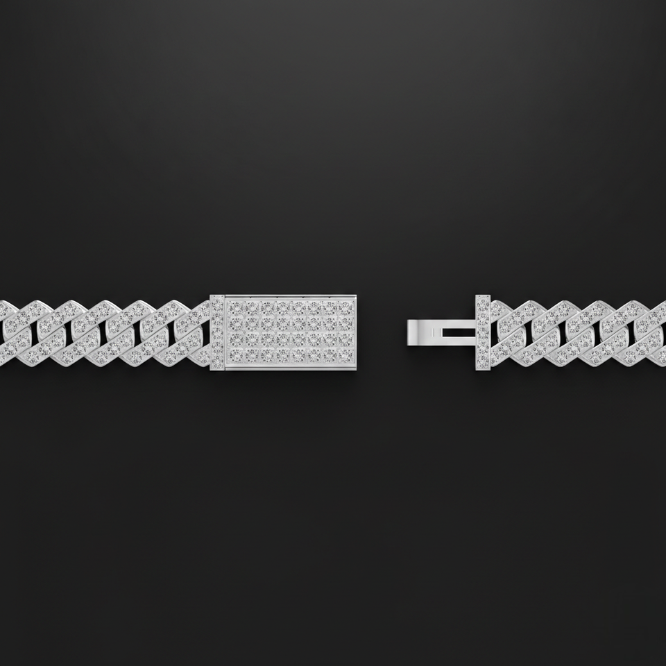 name or words:Moissanite Cuban Link Chain in 925 Silver