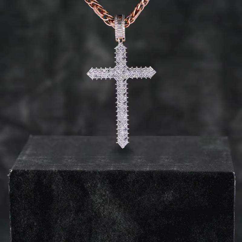 จี้เงินแท้ 925 ประดับโมอิสซาไนต์ VVS รูปทรงกางเขนเล็ก ดีไซน์ Ice Out ผ่านการทดสอบเพชร เครื่องประดับแฟชั่น