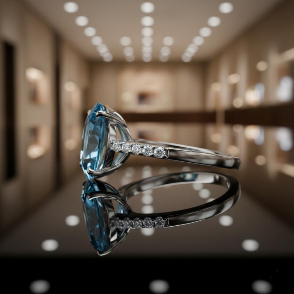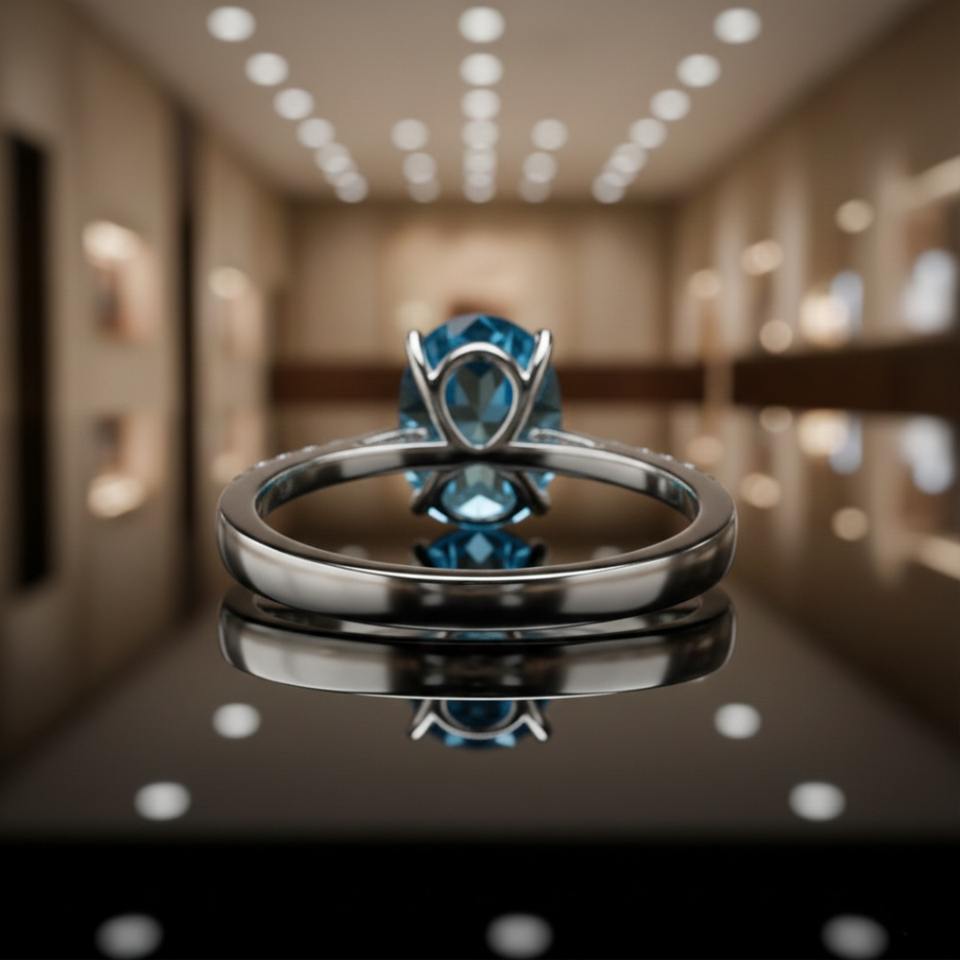 แหวนแต่งงานวินเทจเงินแท้ 925 ประดับเพชรบลูโทแพซทรงวงรีแบบฝังช่อง ได้รับการรับรองจากผู้ตรวจสอบอิสระ เหมาะสำหรับเป็นของขวัญ