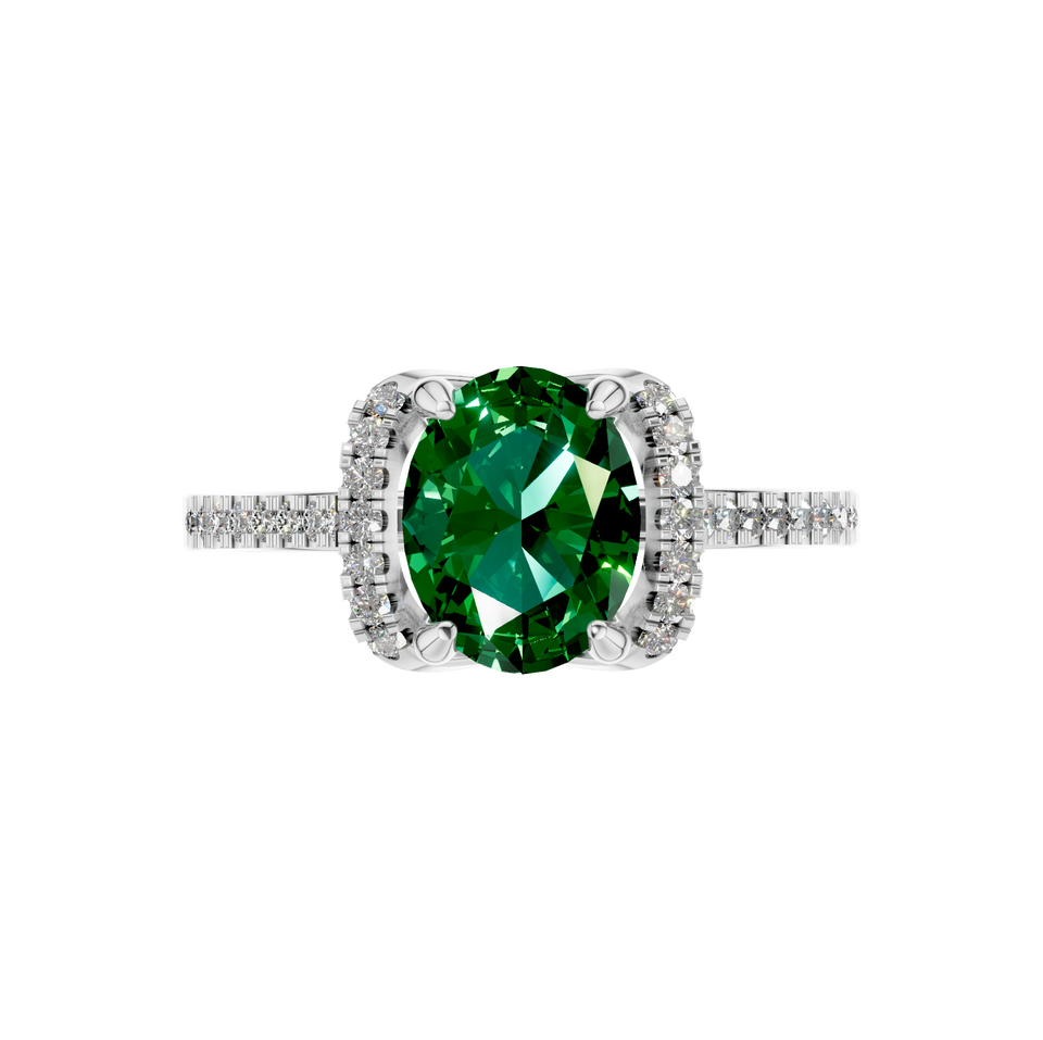 Style:Natural Emerald Gemstone Ring with Unique Halo of Natural Diamonds