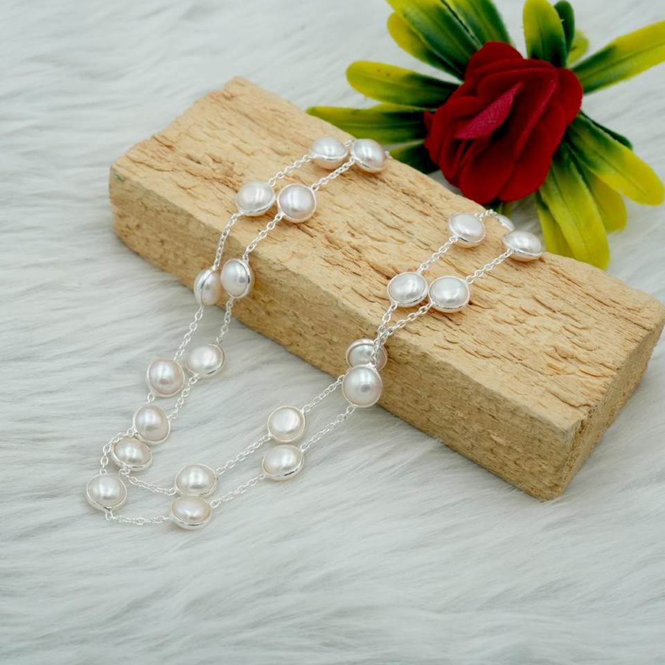 สร้อยคอเงินสีขาว925ทำด้วยมือเครื่องประดับอัญมณีมุกสำหรับผู้หญิงของขวัญสำหรับ Her-NL0024-GS
