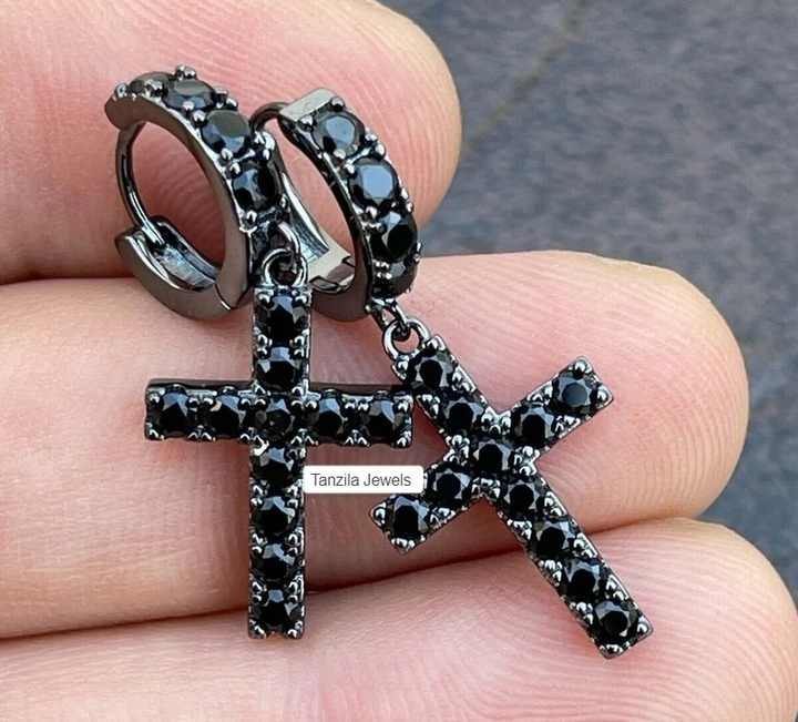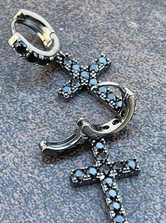 ต่างหูเงินแท้ 925 รูปทรงกากบาทสีดำออกซิไดซ์ประดับเพชรเทียมสำหรับผู้หญิง เครื่องประดับแฟชั่นสำหรับผู้หญิง รุ่นสั่งทำพิเศษ D