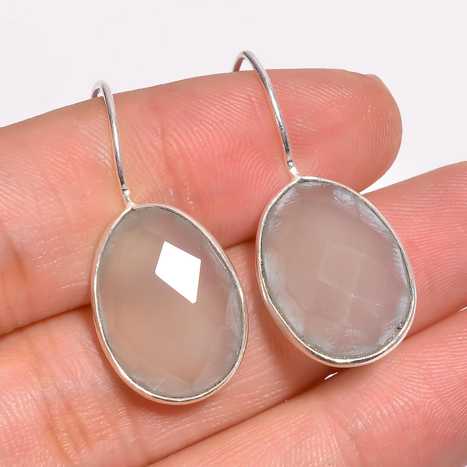 ต่างหูพลอยคาลซิโดนีแบบหยดน้ำหรูหราของผู้หญิงทำจากเงินสเตอร์ลิง925อัญมณีทับทิมสำหรับวันครบรอบสไตล์คลาสสิก