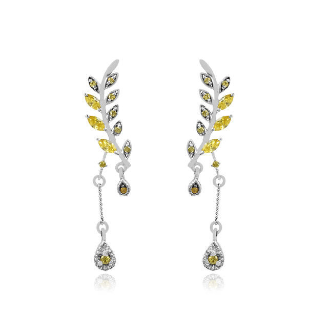 925เงินสเตอร์ลิงต่างหูแบบห้อยสไตล์ผู้หญิงอัญมณีสีเหลืองหิน CZ ชุบเงินคลาสสิกเครื่องประดับสไตล์ที่น่าตื่นตาตื่นใจสำหรับงานเลี้ยง