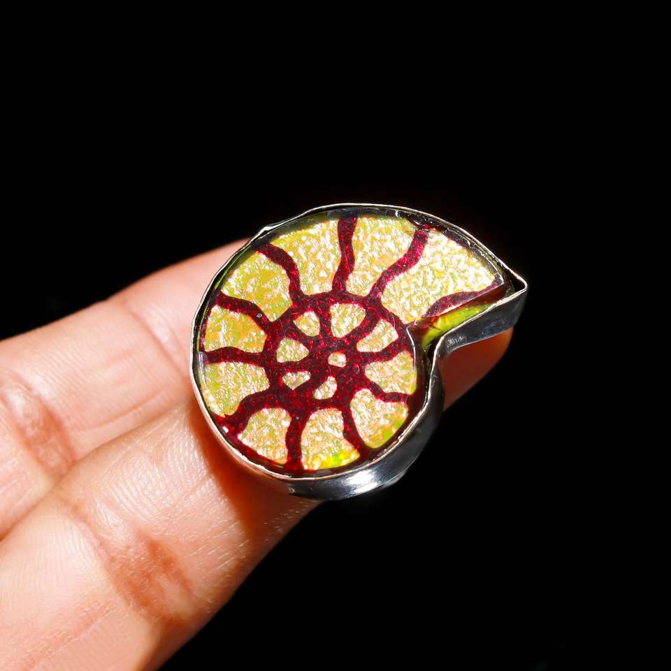 แหวนพลอยคริสเตียนสำหรับผู้หญิงแหวนพลอยแอมโมไนต์สีเหลืองเงินสเตอร์ลิง925สำหรับการหมั้นแบบคลาสสิก