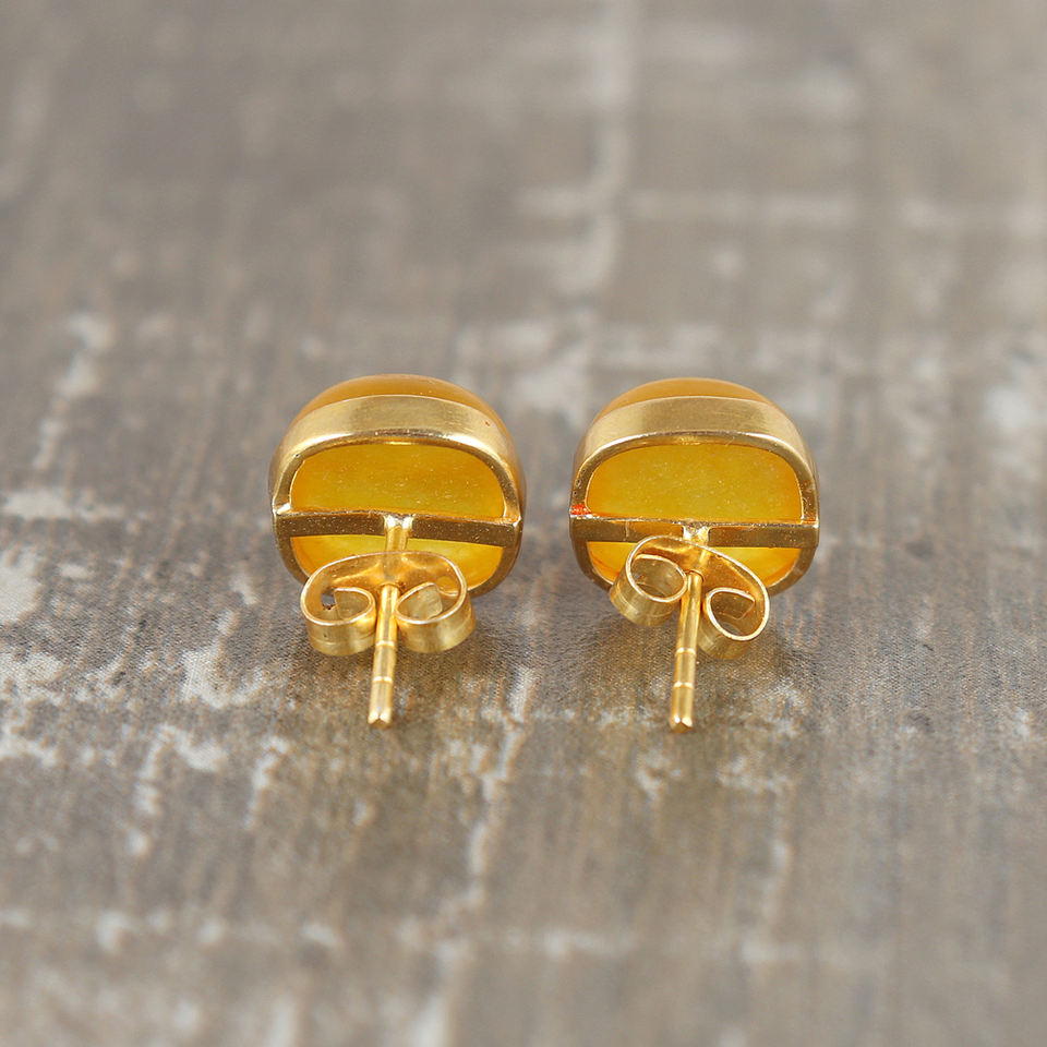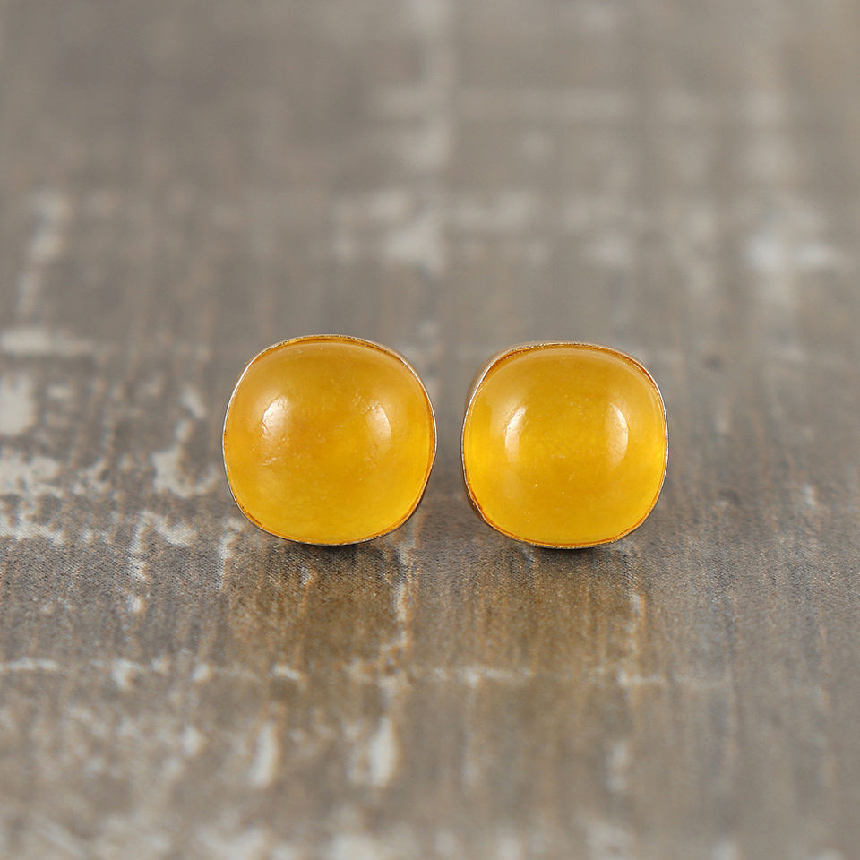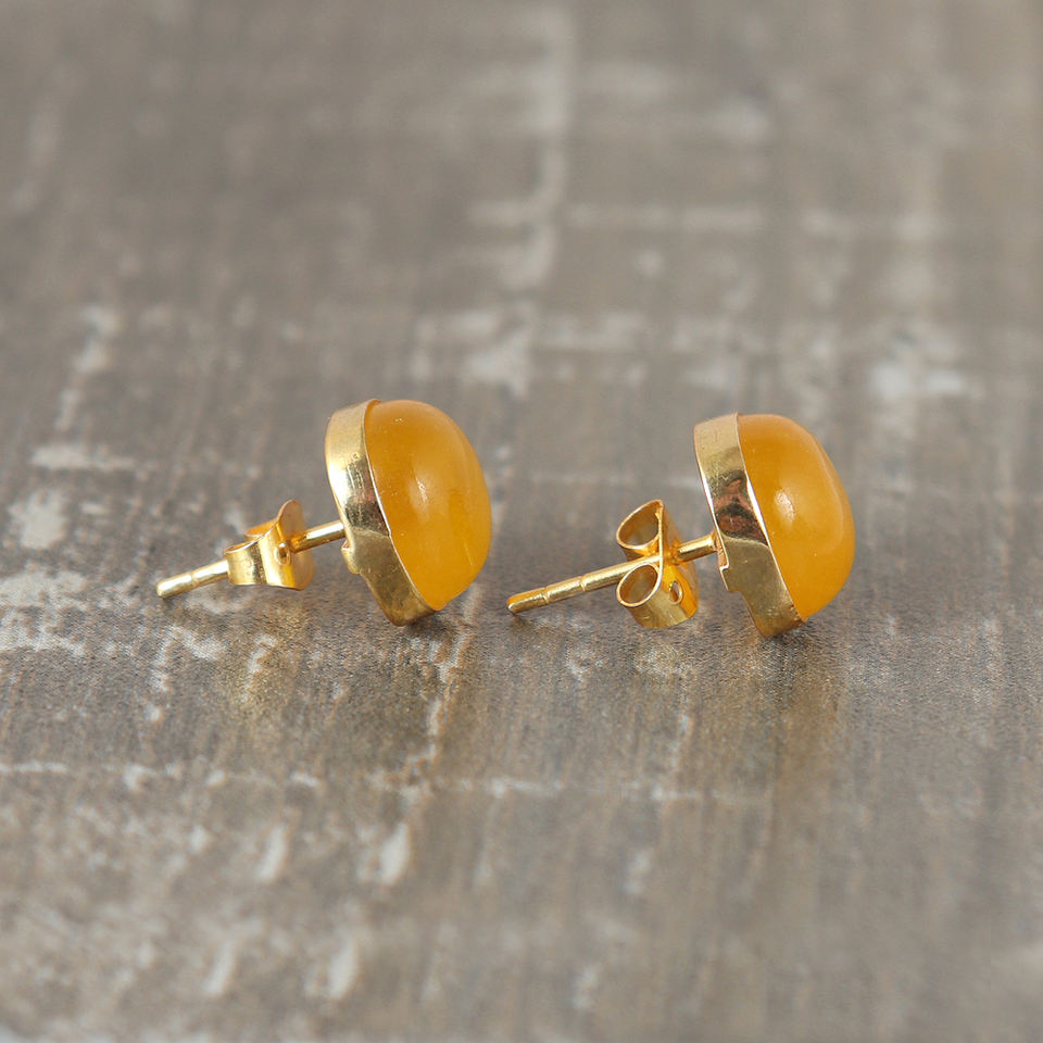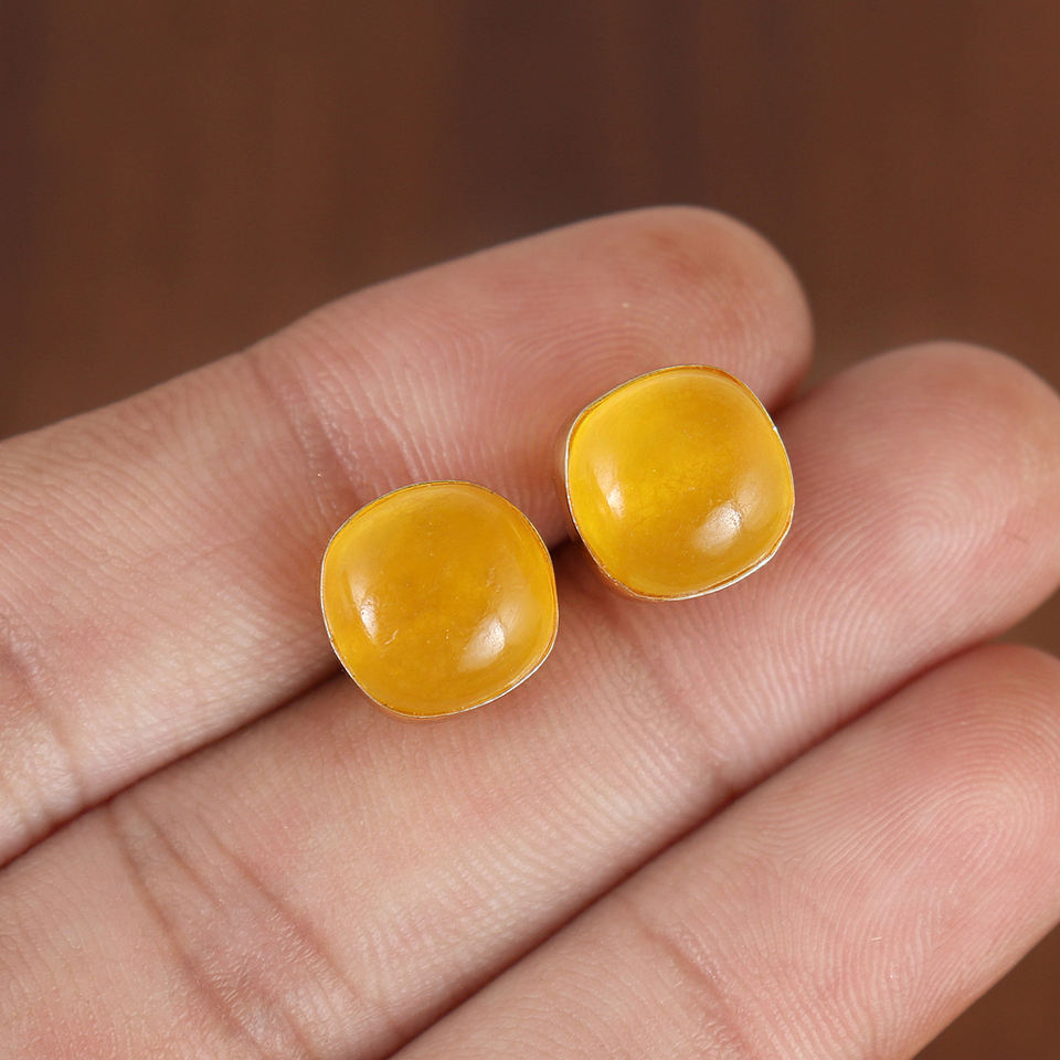 925 Sterling Silver Yellow Gold Plated Genuine Authentic 10mm Chalcedony Stud Earrings Engagement Wedding Anniversary Party Gift