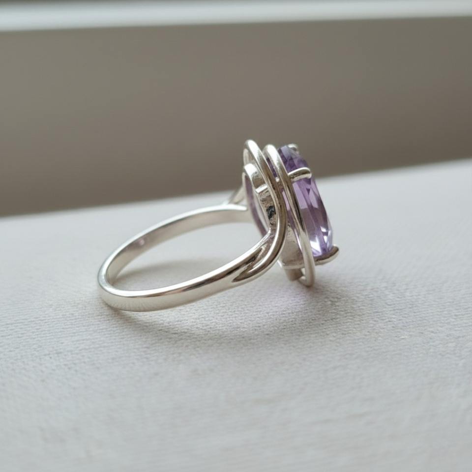 แหวนเงินแท้ 925 ประดับเพชรซิคอนทรงรี ดีไซน์เรียบง่ายสำหรับผู้หญิง รูปทรงปีก ของขวัญวันวาเลนไทน์