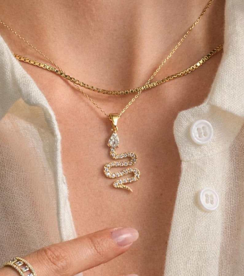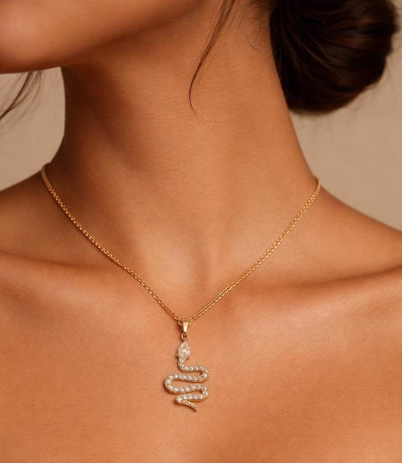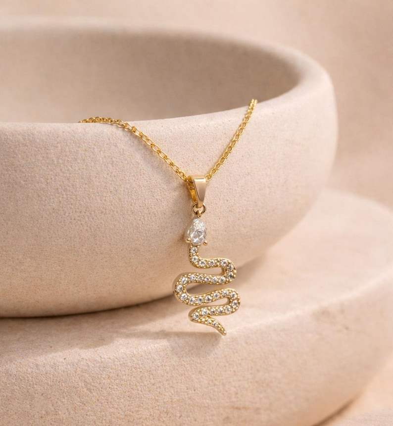 สร้อยคอเงินแท้ 925 ประดับเพทายรูปงู ชุบทอง 14K จี้รูปงู เครื่องประดับมินิมอล ของขวัญสำหรับเธอ