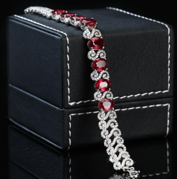Product name:Sterling Sliver White Round Moissanite Women Ruby Bracelet,
