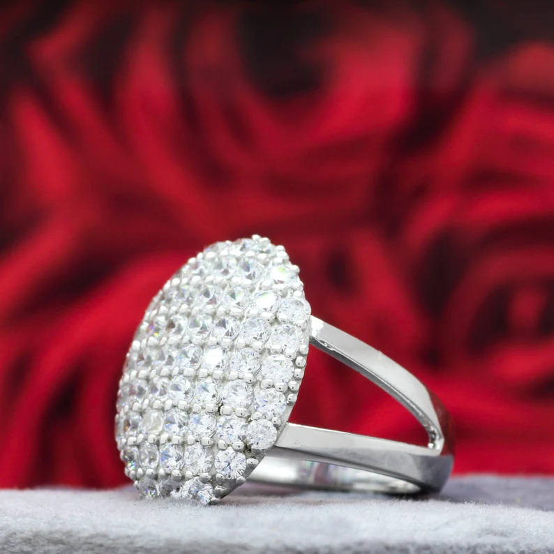 แหวนหมั้นเพชรโมอิสซาไนต์เงินแท้ 925 ชุบสแตนเลสสตีล เครื่องประดับแฟชั่นสำหรับผู้หญิง ดีไซน์หรูหรา