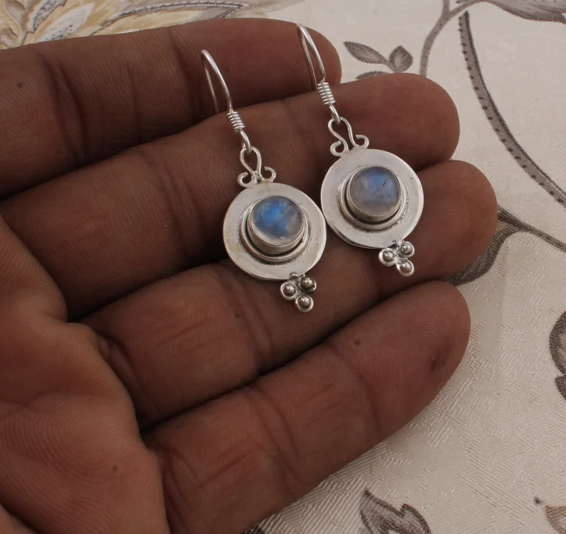 ต่างหูแบบห้อยอัญมณีสีเงินสเตอร์ลิงสีรุ้งธรรมชาติห่วงสำหรับงานแต่งงานสุดหรูในราคา925