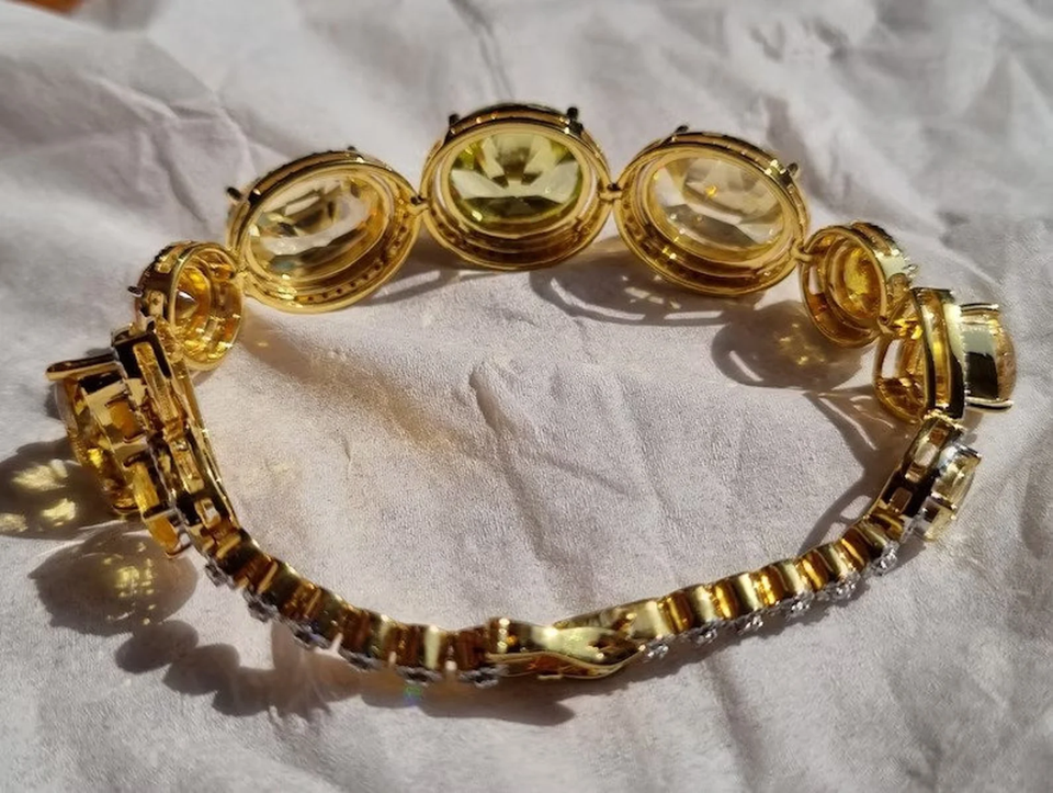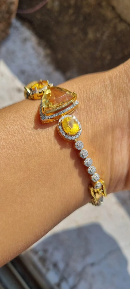 สร้อยข้อมือเพชรโมอิสสีเหลืองเงินสเตอริง925กำไลข้อมือเทนนิสสายเดี่ยวชุบทองเพชรโมอิสซาไนต์ทรงกลม