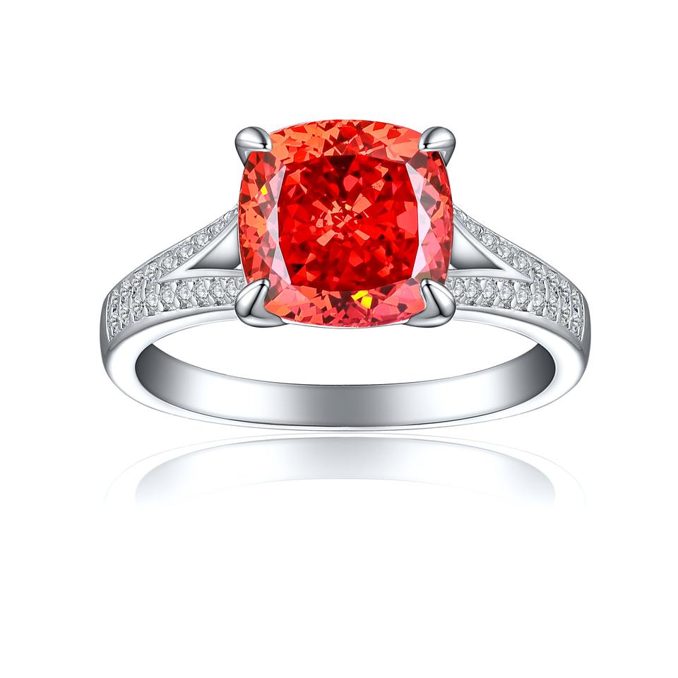 ของขวัญแต่งงาน925แหวนสัญญาแบบแข็ง925เงินสเตอร์ลิงทำด้วยมือสีแดงควอตซ์พร้อมเครื่องประดับแหวนพลอยบุษราคัมสีขาว