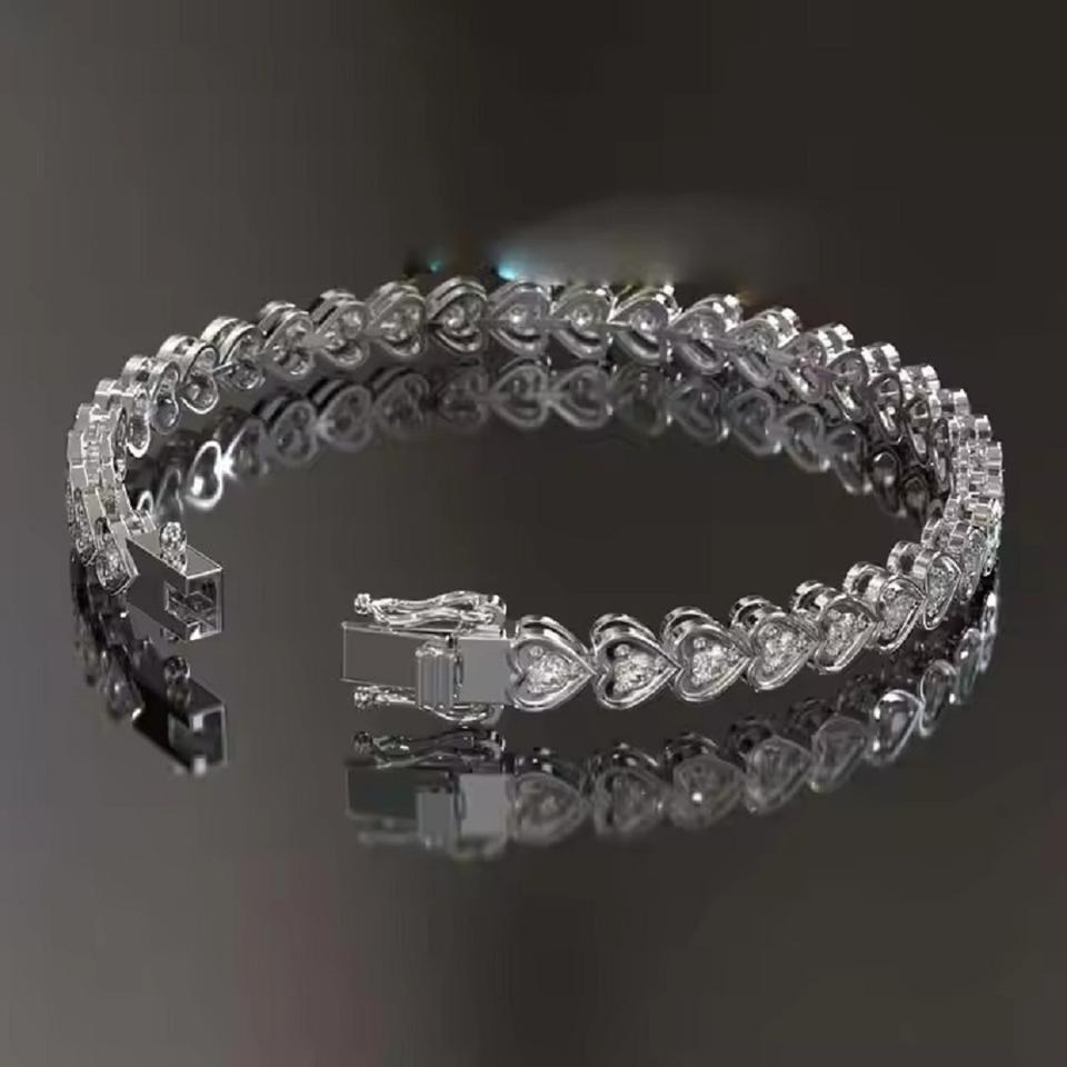 กำไลรูปหัวใจกลมตัดสีทองสีเหลือง925พร้อมเพชรสำหรับผู้หญิงสำหรับงานปาร์ตี้และของขวัญสำหรับผู้หญิง