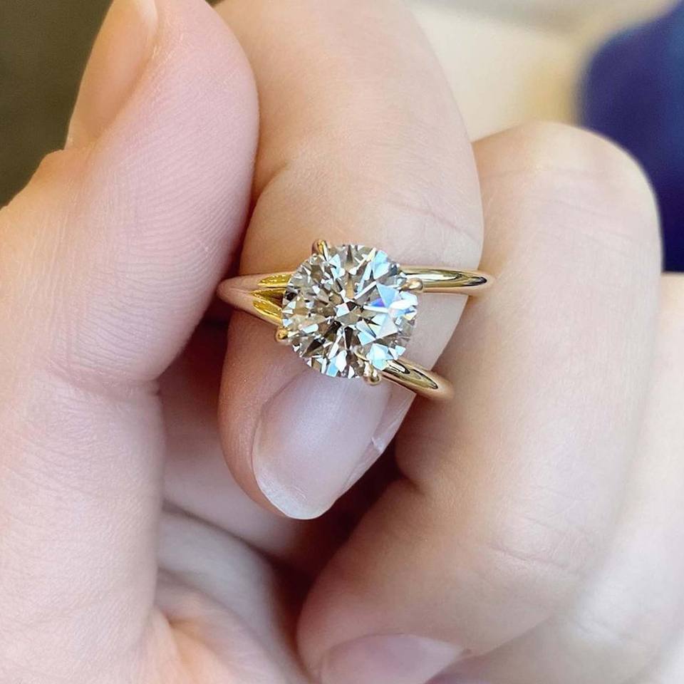 แหวนเพชรโมอิส1.50โซลิแทร์ประดับเพชรแบบดั้งเดิมแหวนแต่งงานเพชร925เงินแหวนชุบทองสีเหลือง