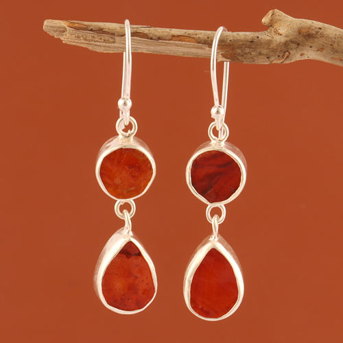 ต่างหูห้อยเงินแท้925ทรงหยดน้ำ,ต่างหูห้อยหินคาร์เนเลียนแบบดิบน้ำหนักเบาสำหรับใส่ไปงานเลี้ยง