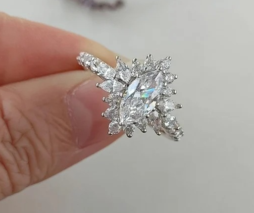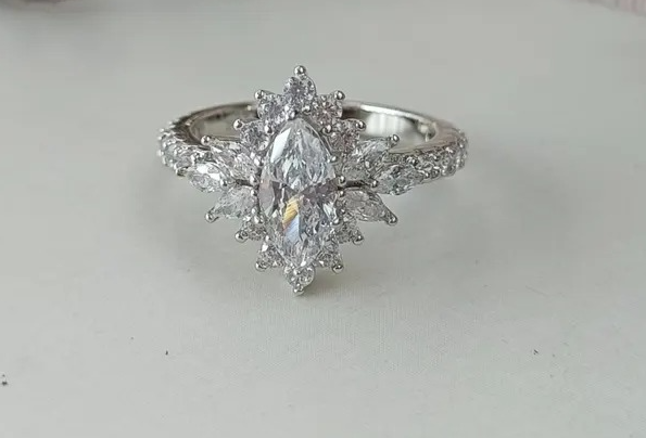แหวนเพชรโมอิสซาไนต์เงินแท้ 925 ของขวัญสำหรับงานแต่งงาน/งานหมั้น